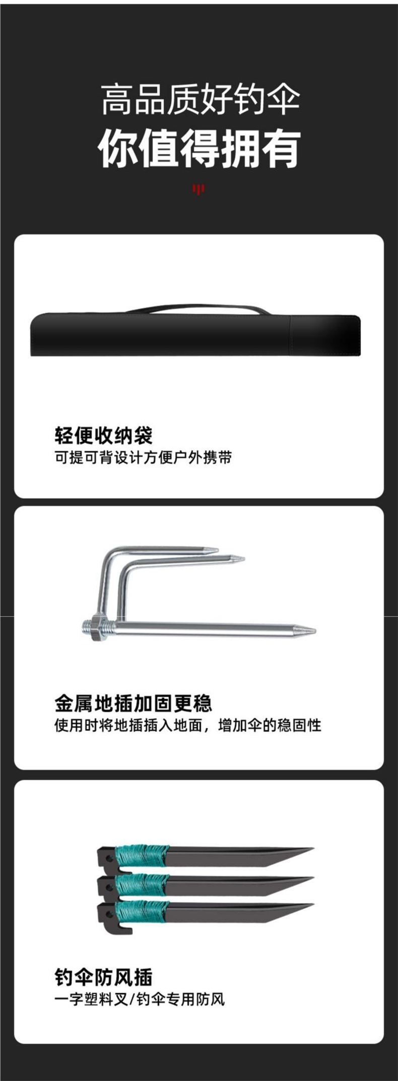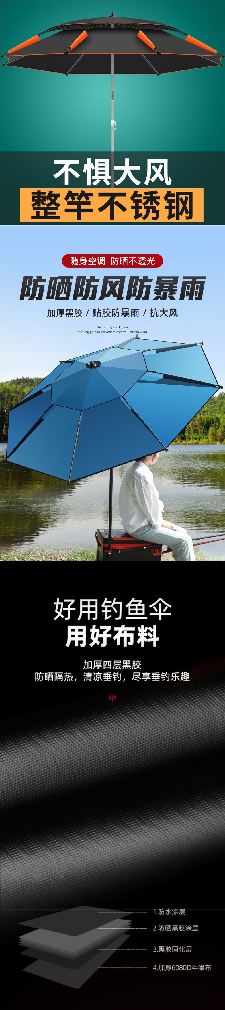 낚시 우산, 접이식 대형 낚시 우산, 두꺼운 3단 범용 낚시 우산, 낚시용 자외선 차단 및 폭우 차단 특수