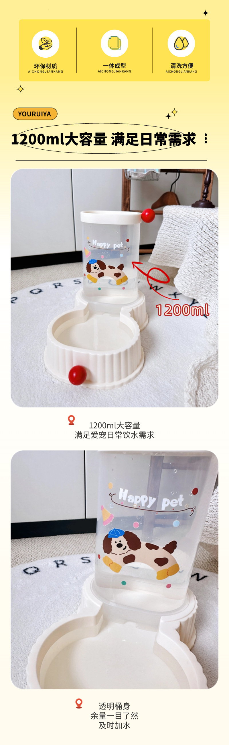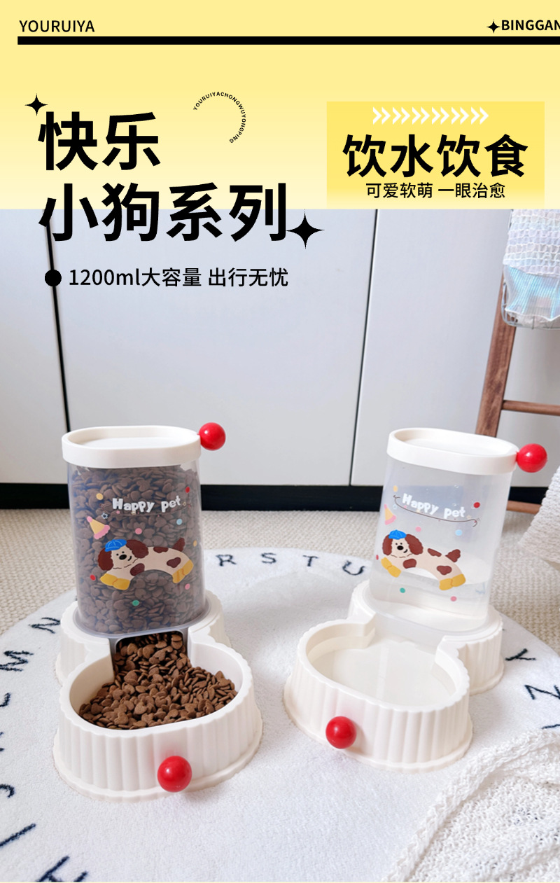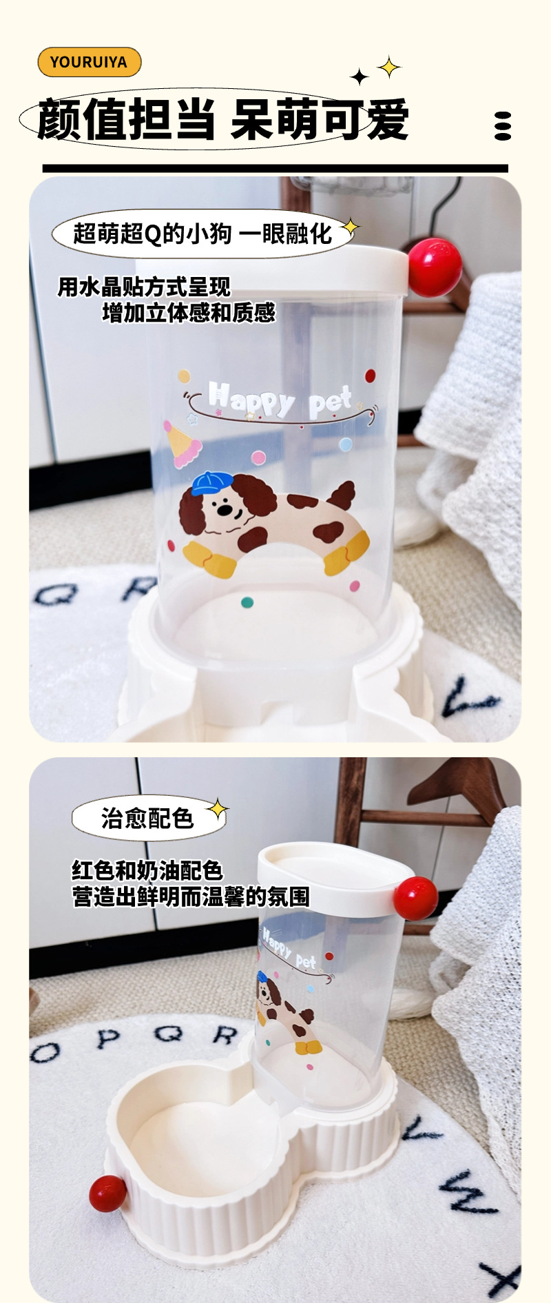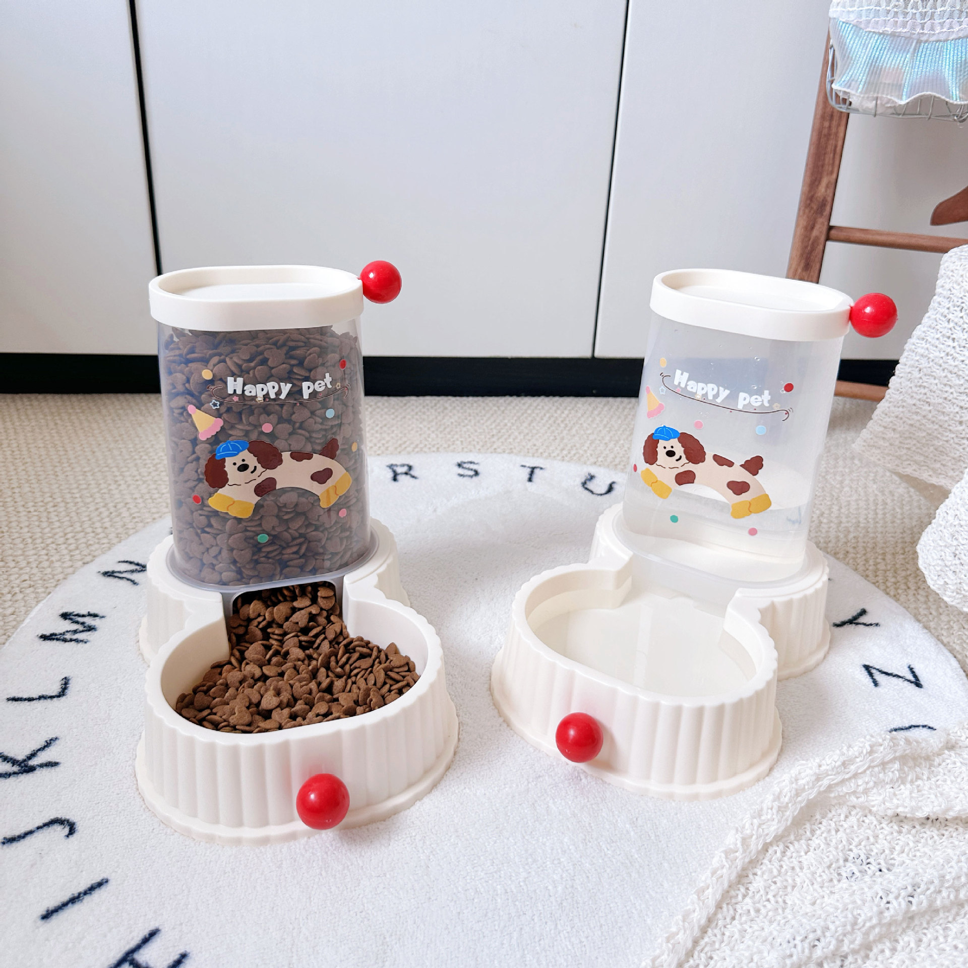강아지 물 디스펜서 자동 급식기 간단한 플러그인 없음 귀여운 먹이와 물 자동 비 젖은 입 애완 동물 용품스토어 가기