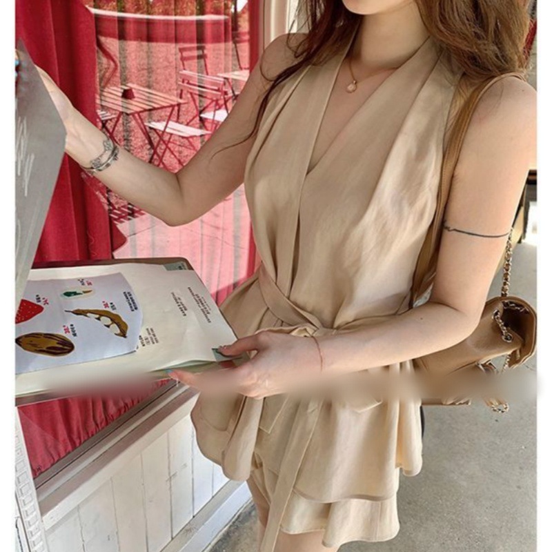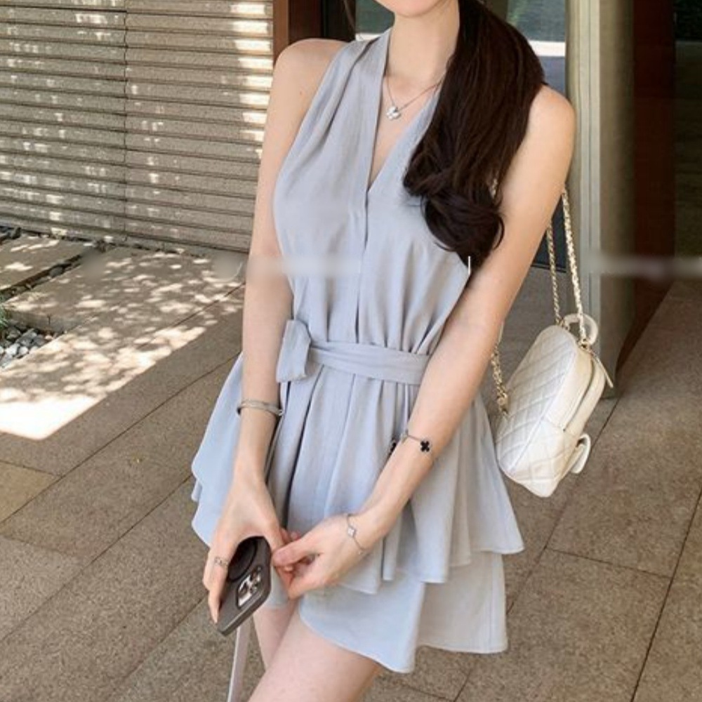 한국 신상 2026 여름 순수하고 섹시한 패션 미녀 홀터넥 탑 여름 세트 여성 얇은 반바지 투피스