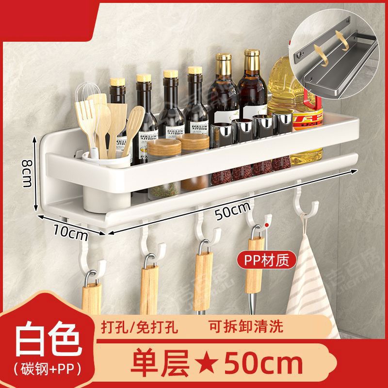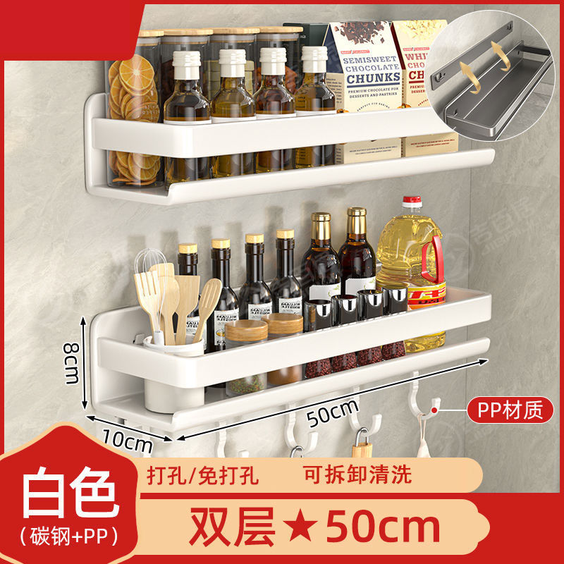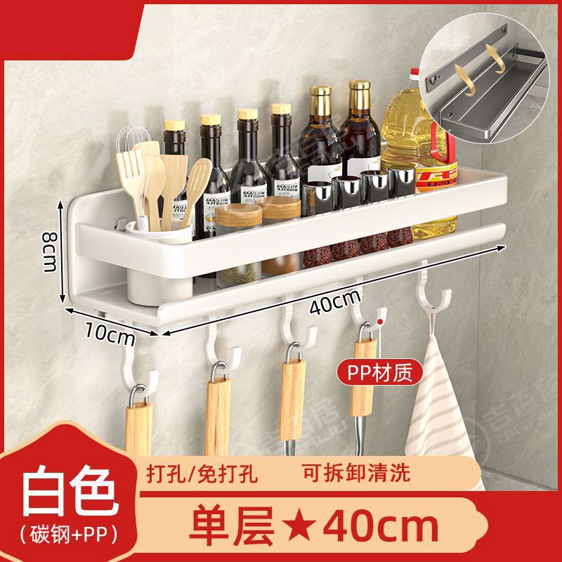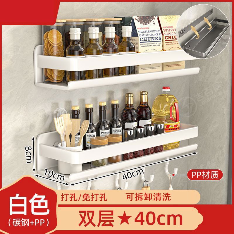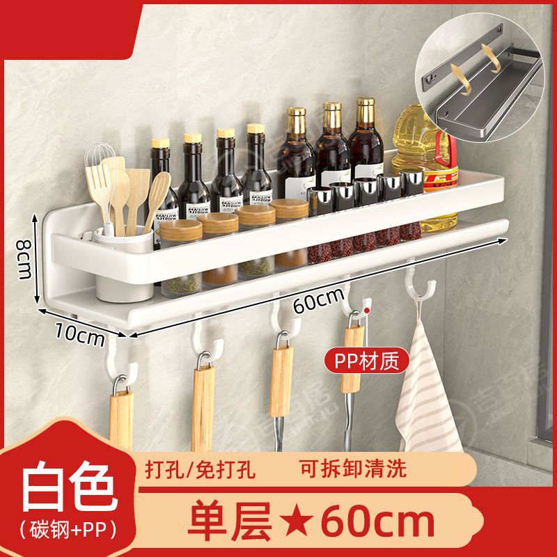 국경 간 흰색 주방 보관 랙 조미료 랙 펀치없는 벽걸이 형 다기능 주방 보관 랙 탄소강 도매