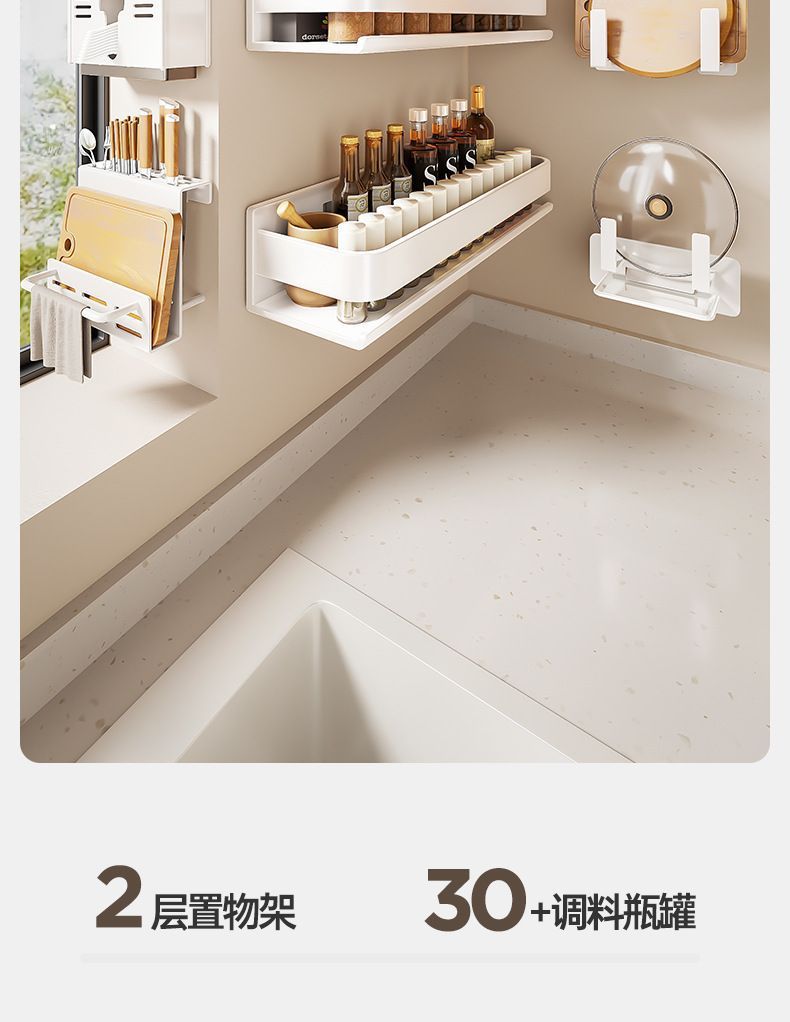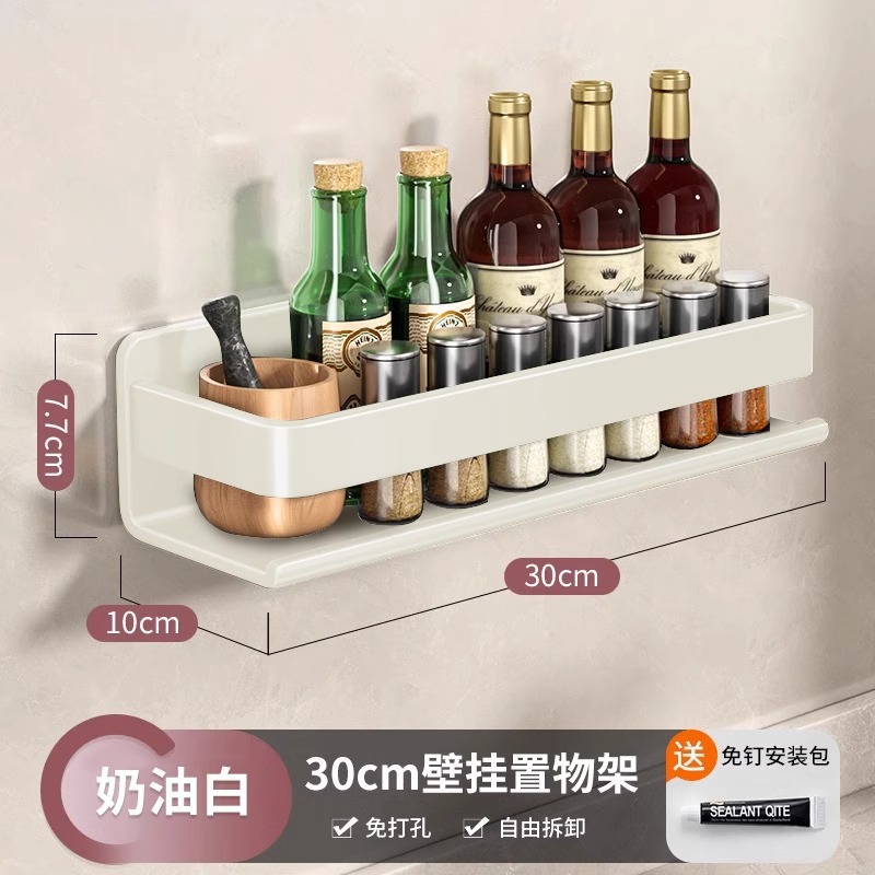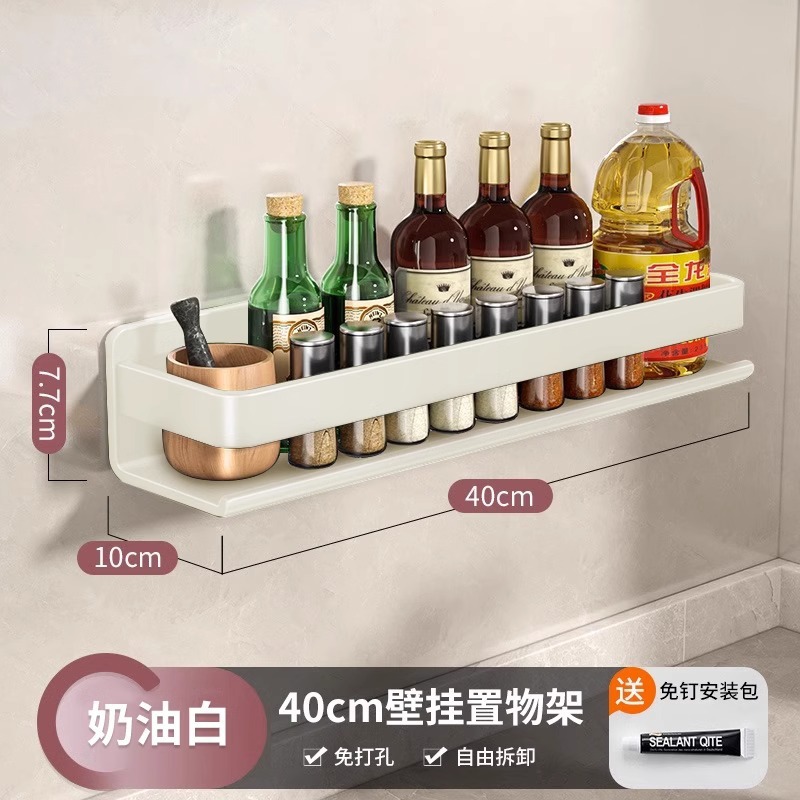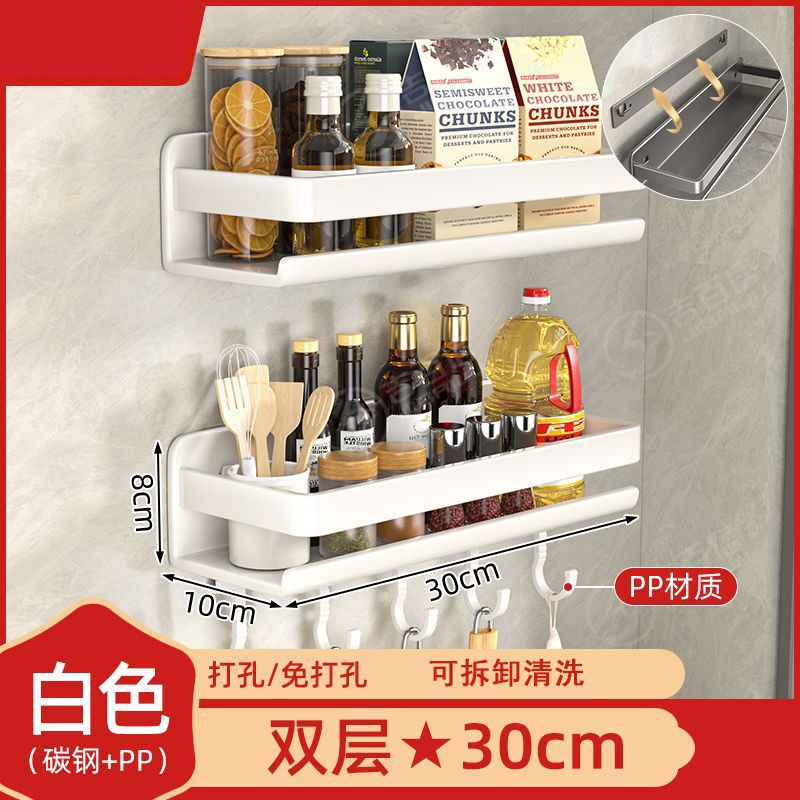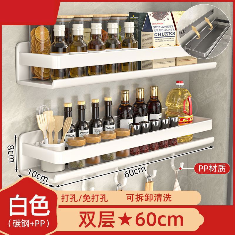 국경 간 흰색 주방 보관 랙 조미료 랙 펀치없는 벽걸이 형 다기능 주방 보관 랙 탄소강 도매