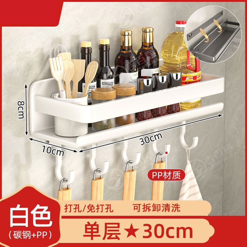 국경 간 흰색 주방 보관 랙 조미료 랙 펀치없는 벽걸이 형 다기능 주방 보관 랙 탄소강 도매스토어 가기