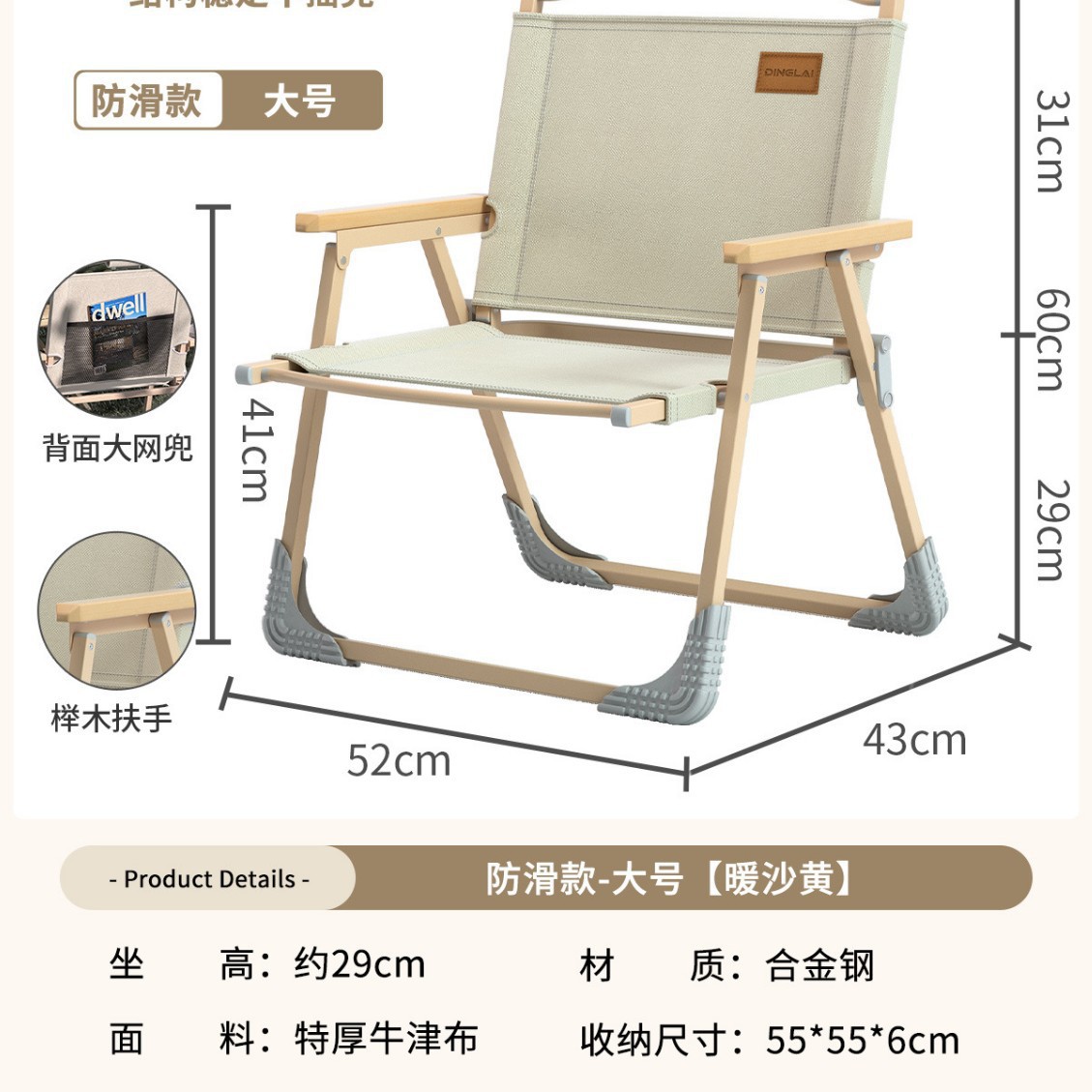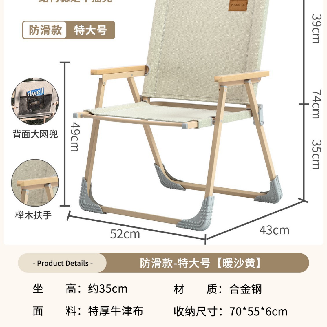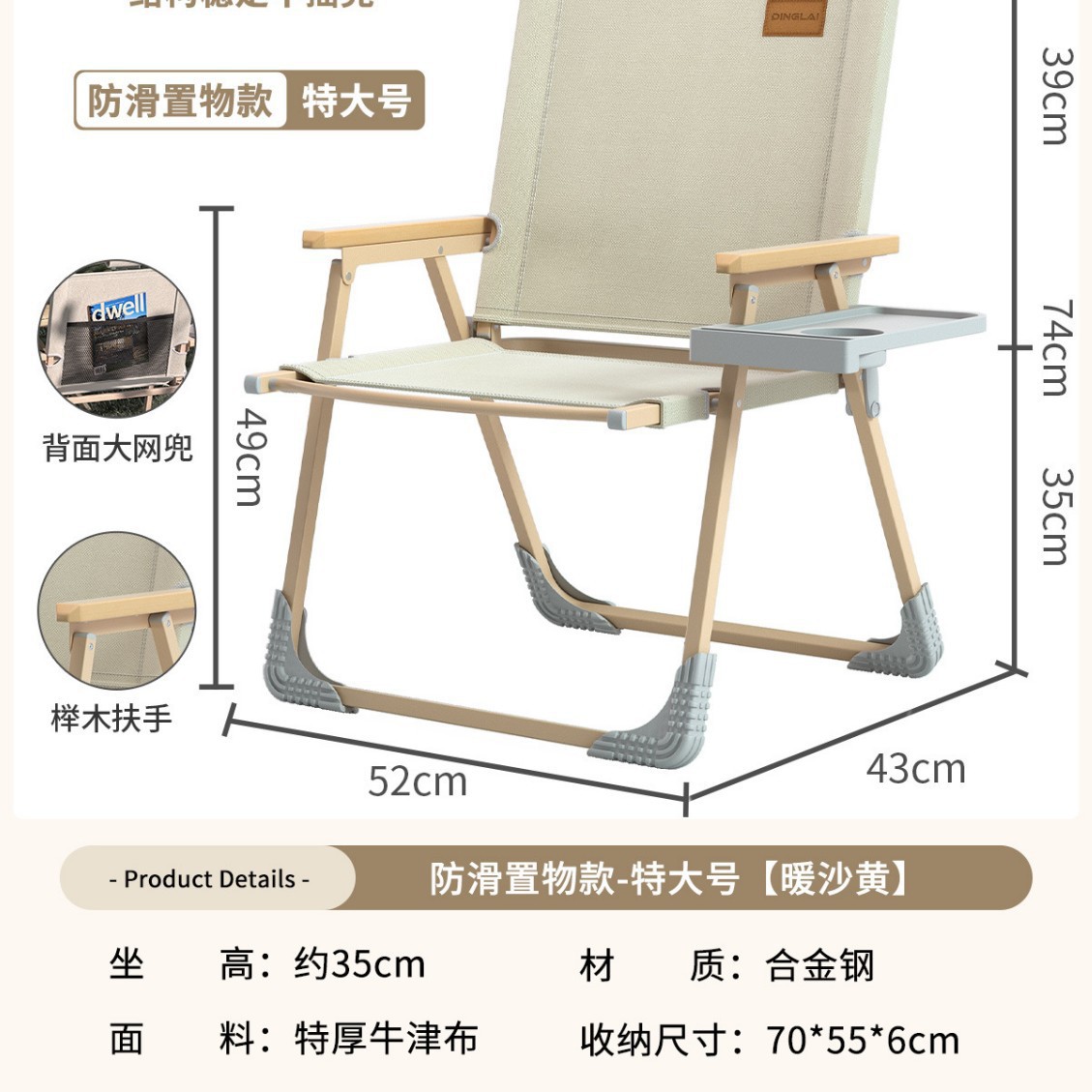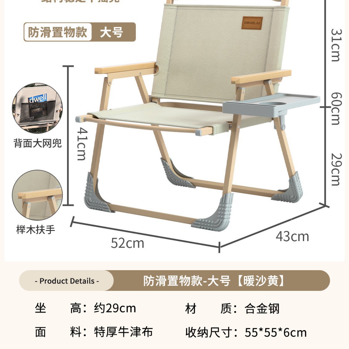 • 대형 사이즈 | 미끄럼 방지 수납 스타일 + 리프팅 장갑 [합금강 프레임] 따뜻한 샌드 옐로우