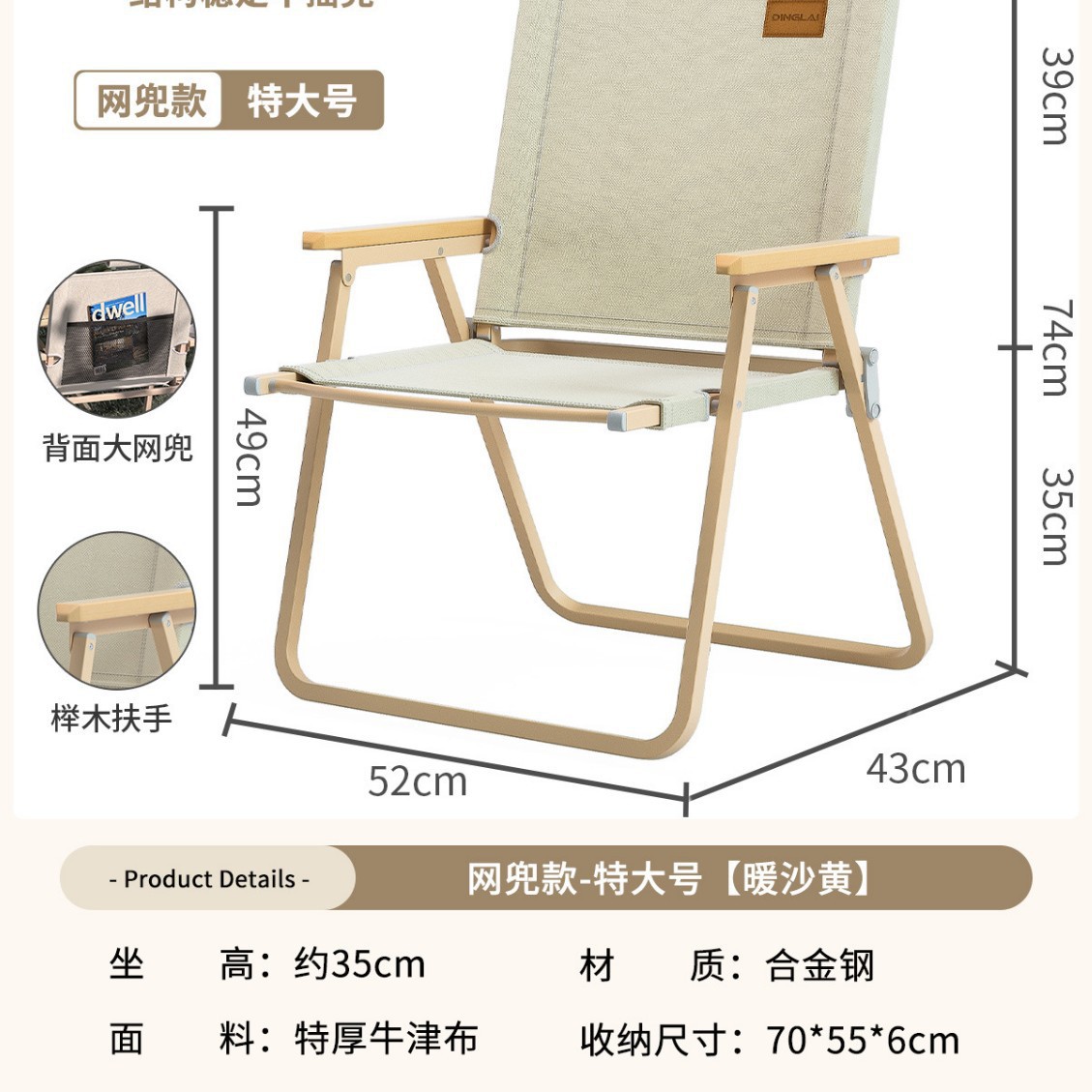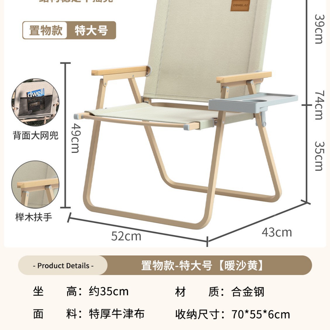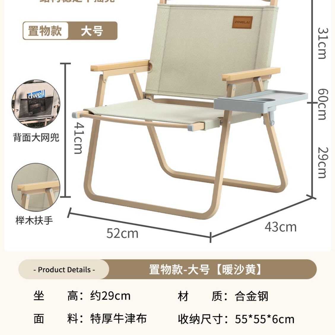 • 대형 사이즈 | 미끄럼 방지 수납 스타일 + 리프팅 장갑 [합금강 프레임] 따뜻한 샌드 옐로우