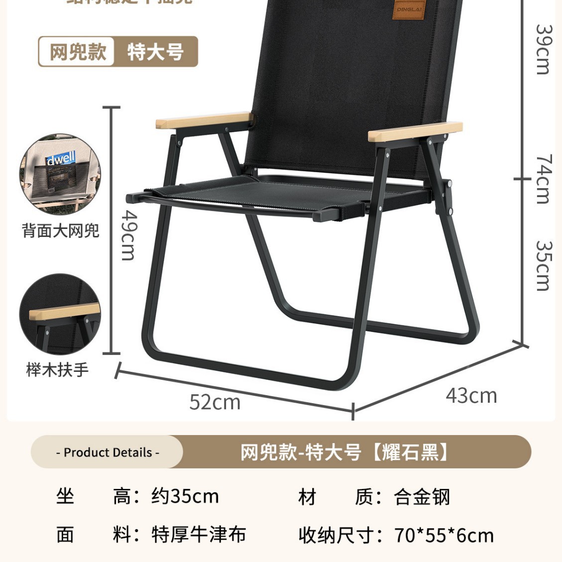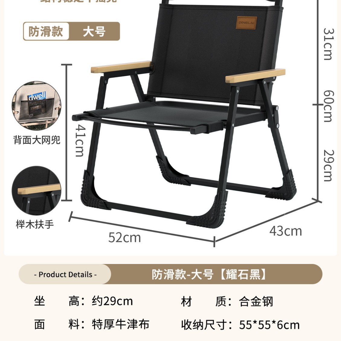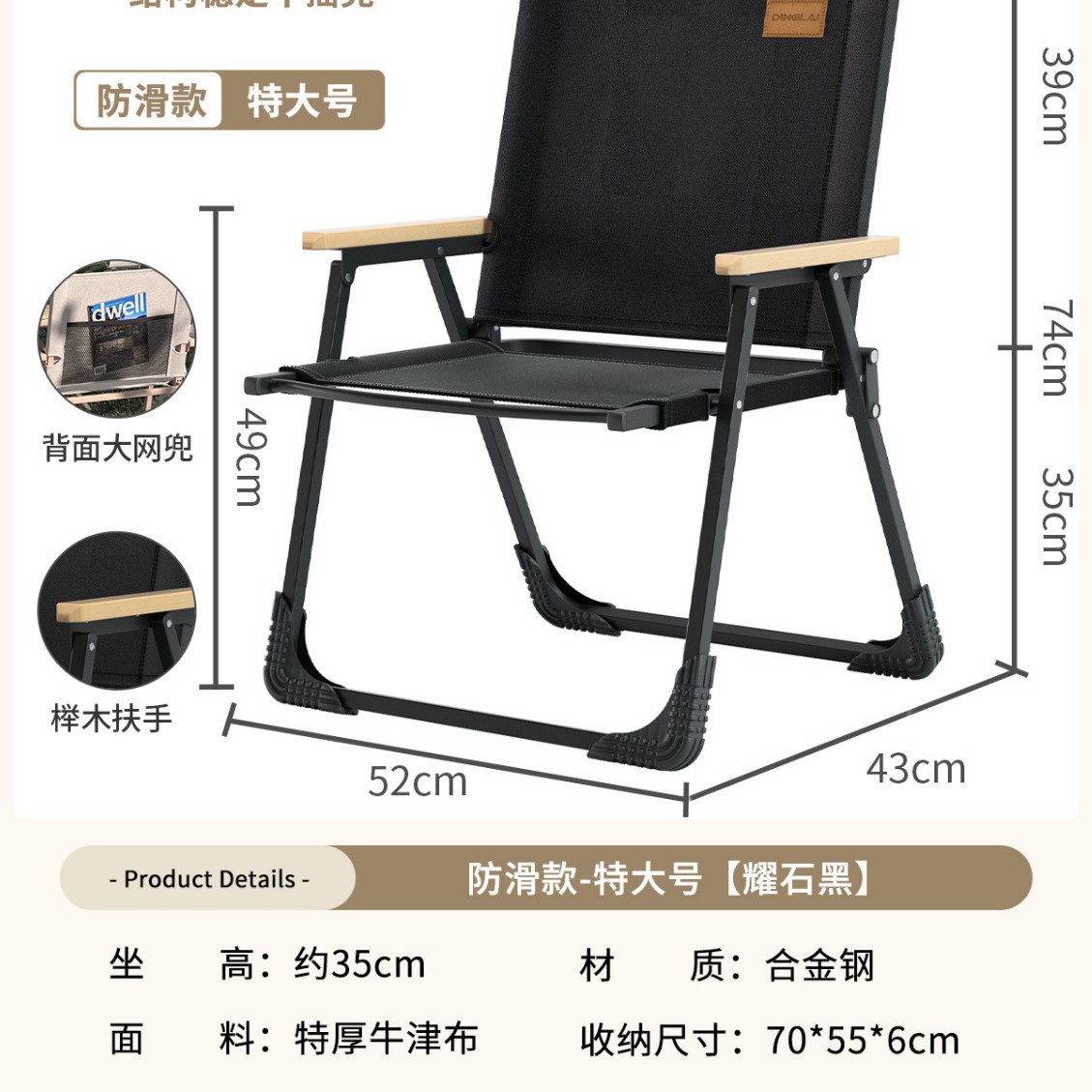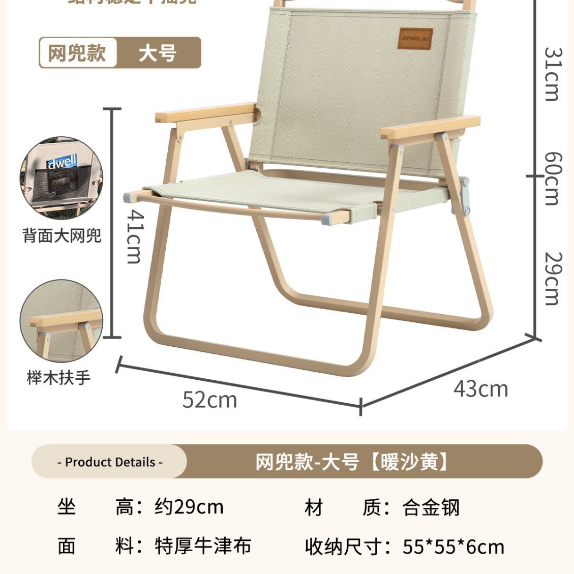 • 대형 사이즈 | 미끄럼 방지 수납 스타일 + 리프팅 장갑 [합금강 프레임] 따뜻한 샌드 옐로우