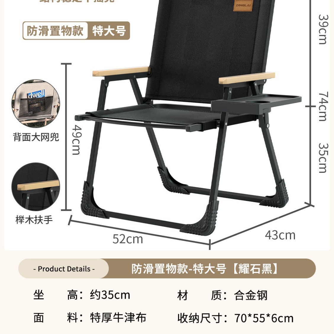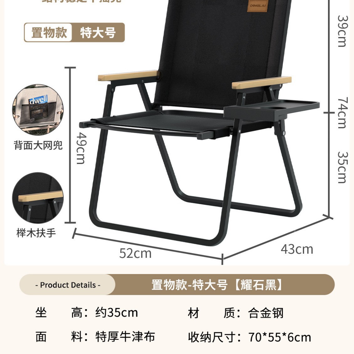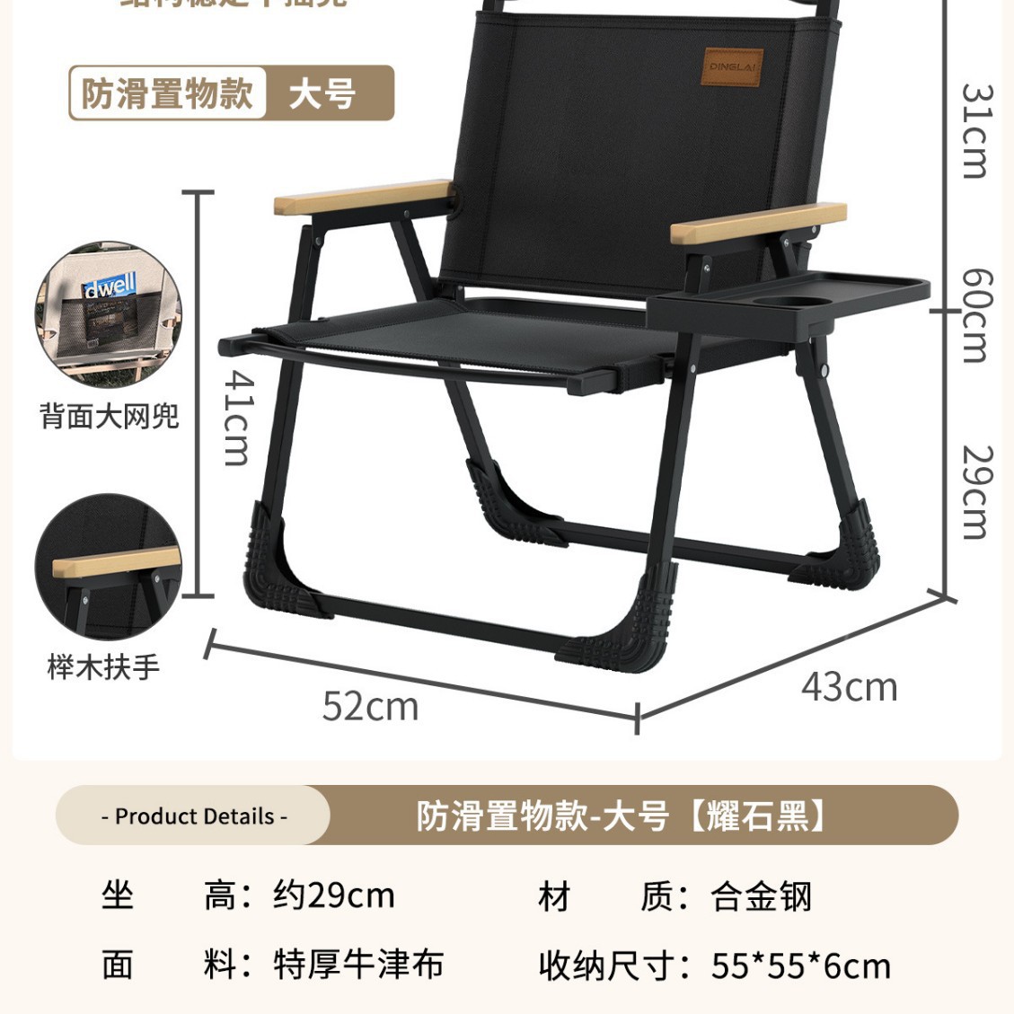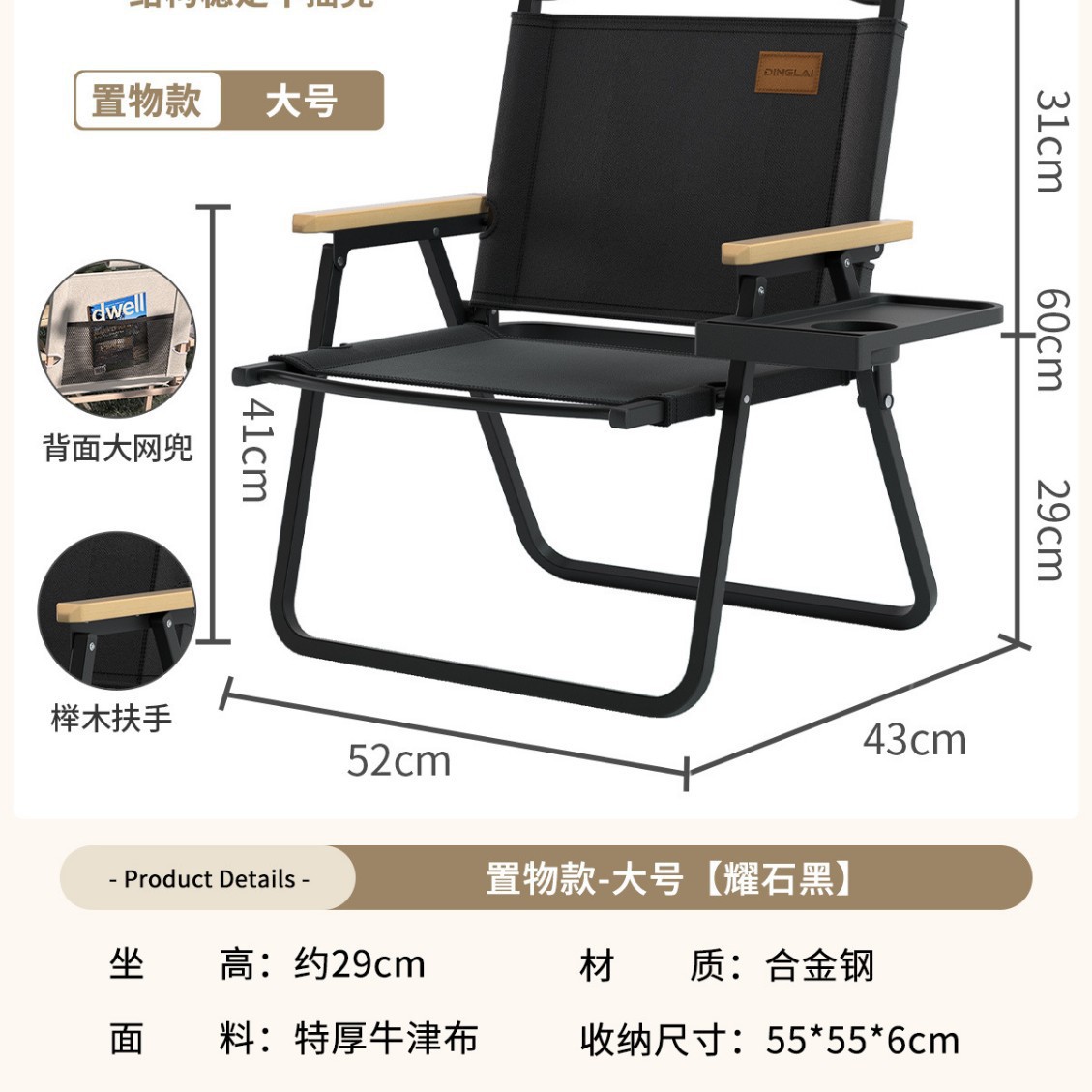 • 업그레이드된 탈착식 의자 옆 수납 트레이丨더 쉽게 가져갈 수 있습니다.