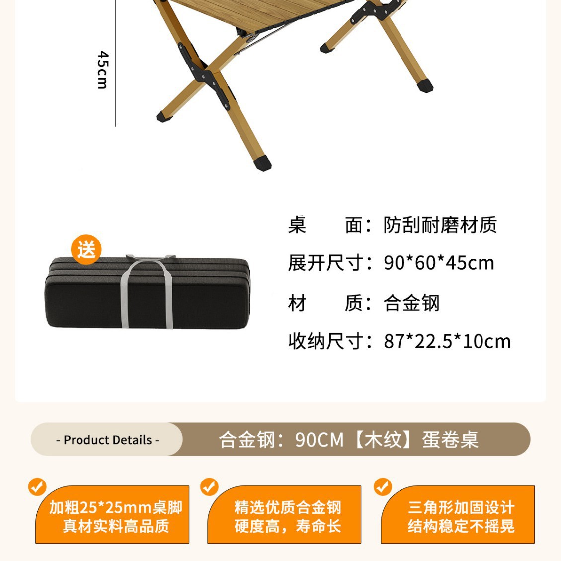 • [고강도 합금강] 나뭇결 90CM 모델丨25*25 두꺼운 테이블 다리(수납 가방 포함)