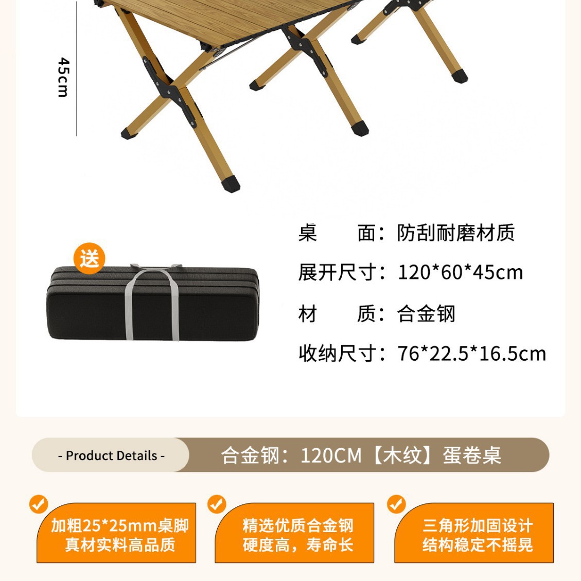 • [고강도 합금강] 나뭇결 120CM 모델丨25*25 두꺼운 테이블 다리(수납 가방 포함)