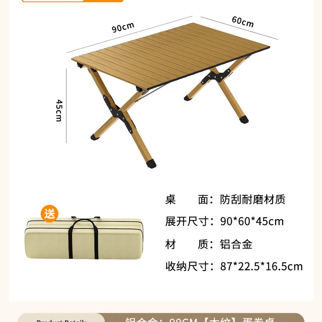• [휴대용 알루미늄 합금 나뭇결] 90CM 에그롤 테이블 - 무료 보관 가방(가벼운 여행)