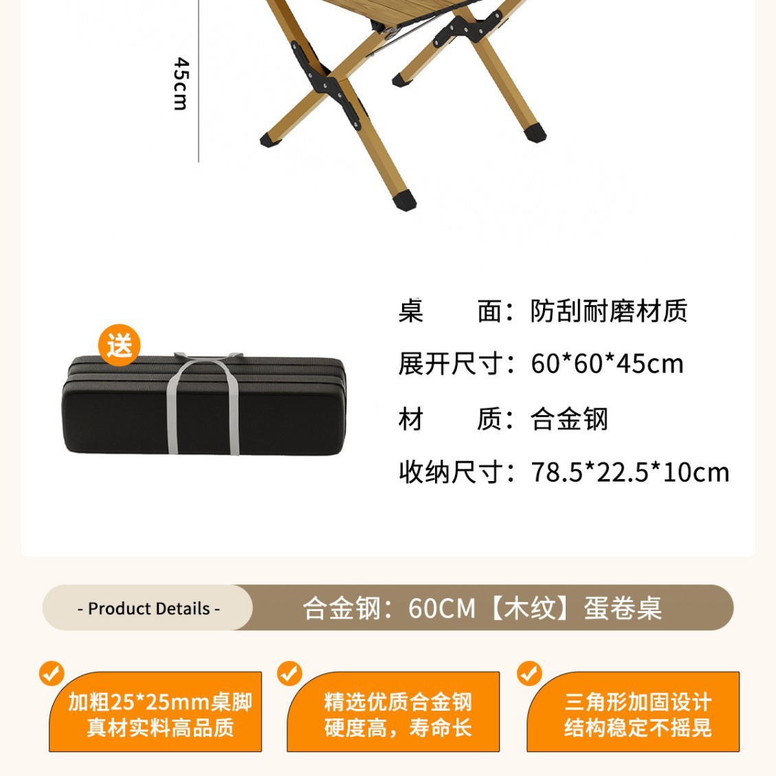 • [고강도 합금강] 나뭇결 60CM 모델丨25*25 두꺼운 테이블 다리(수납 가방 포함)