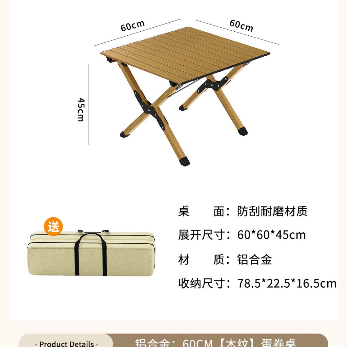 • [휴대용 알루미늄 합금 나뭇결] 60CM 에그롤 테이블 - 무료 보관 가방(가벼운 여행)