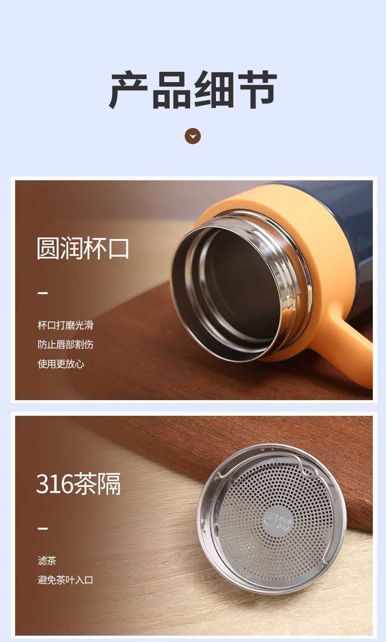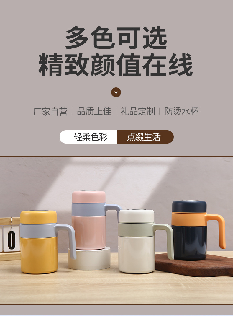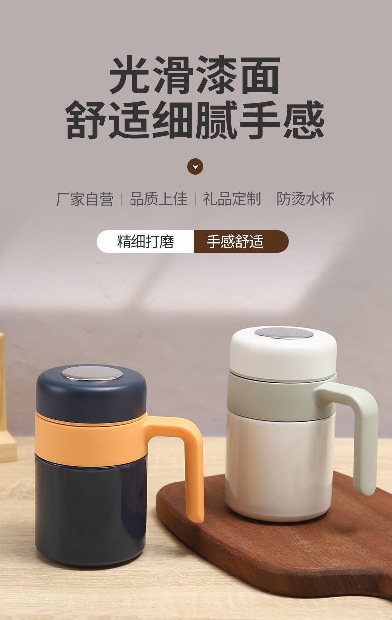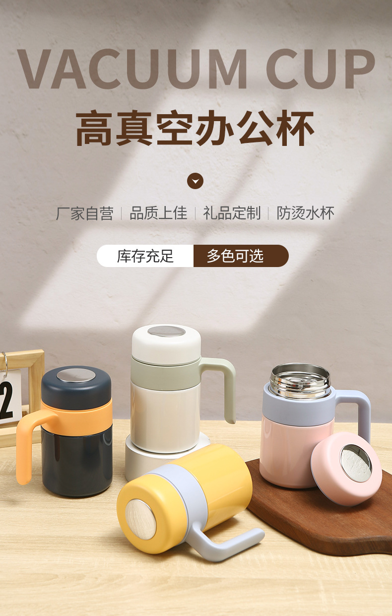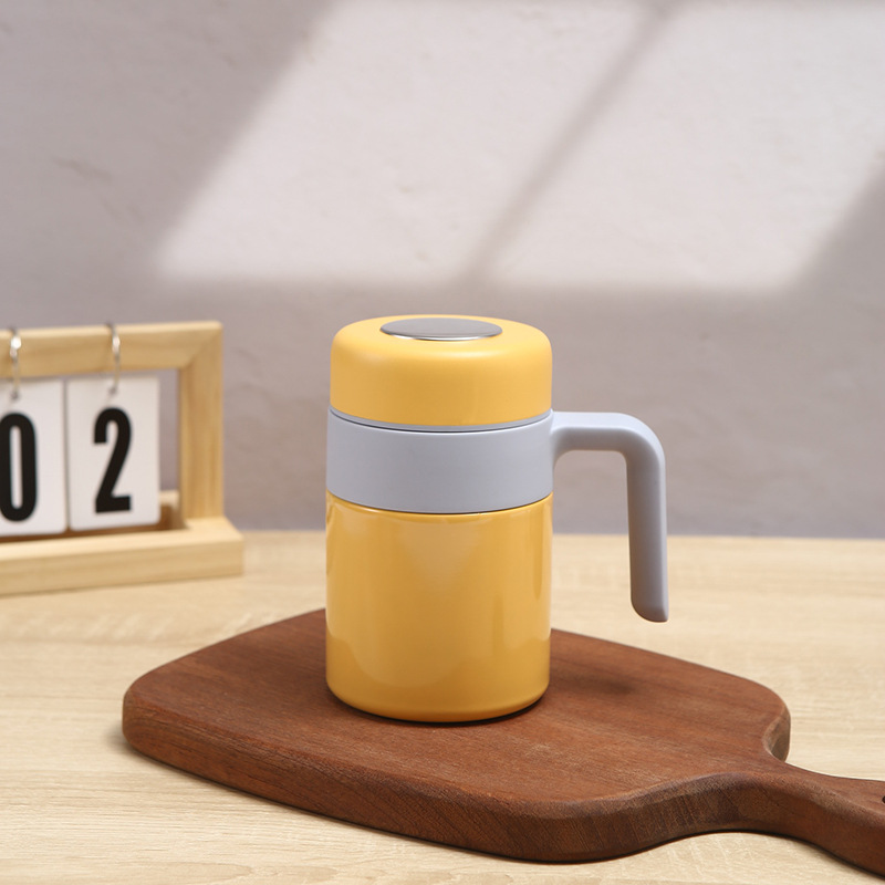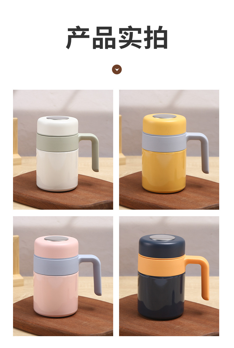 새로운 316 스테인레스 스틸 보온병 컵 더블 레이어 휴대용 핸들 오피스 컵 차 물 분리 진공 차 머그잔