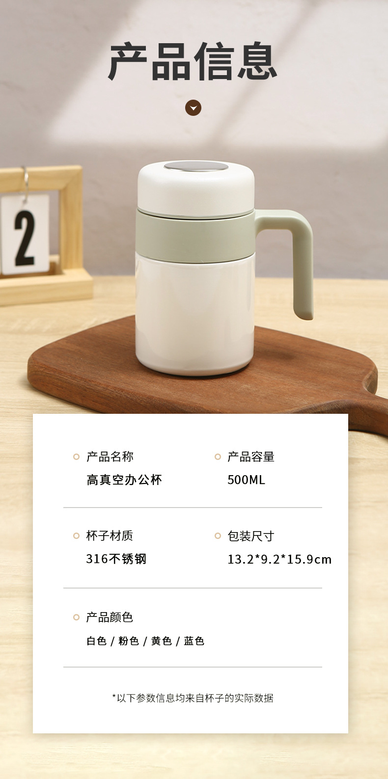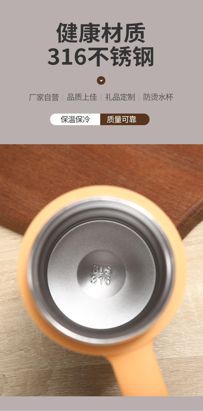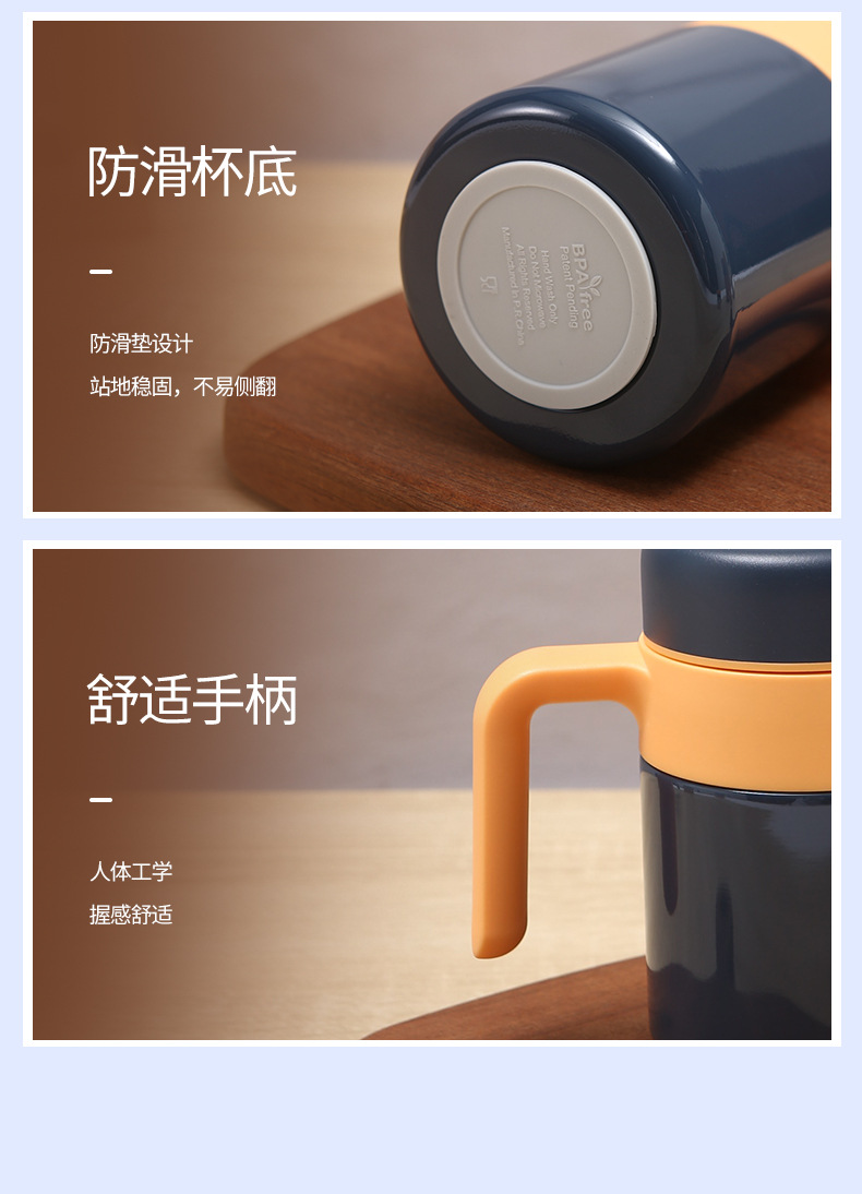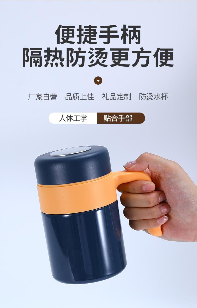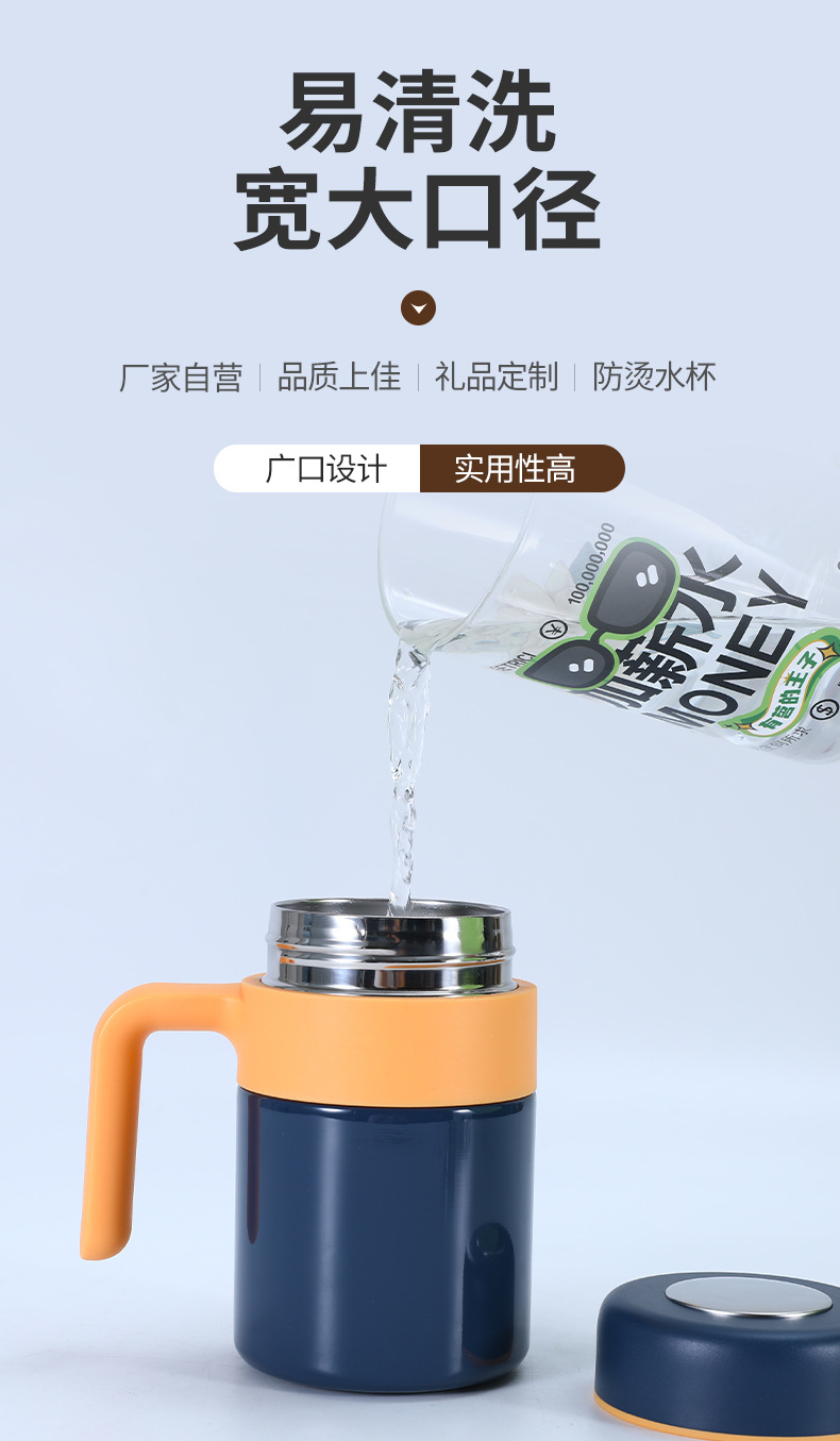 새로운 316 스테인레스 스틸 보온병 컵 더블 레이어 휴대용 핸들 오피스 컵 차 물 분리 진공 차 머그잔