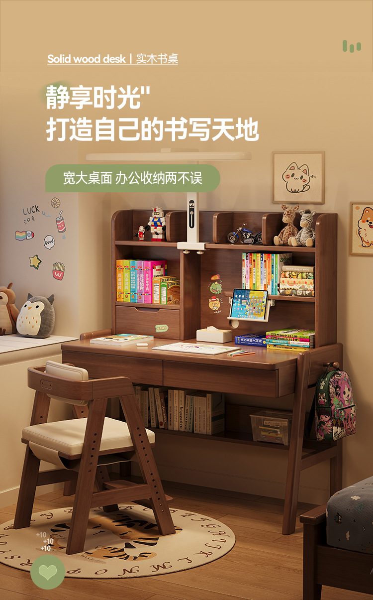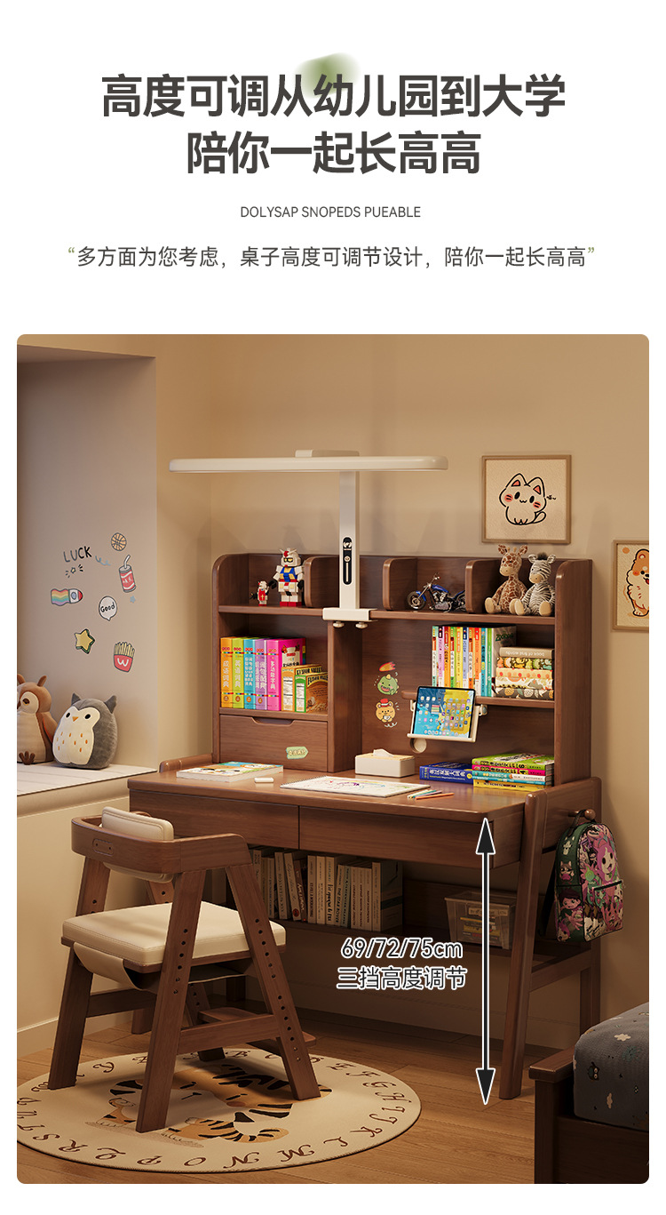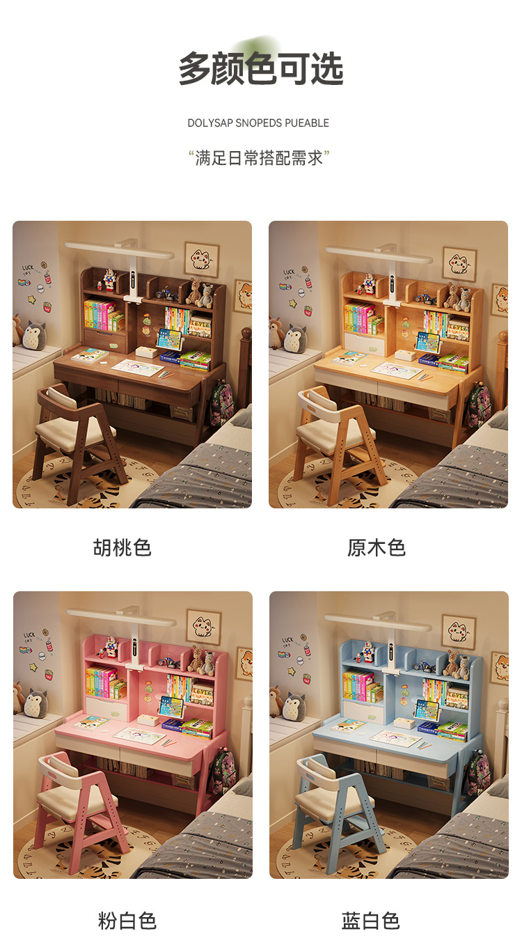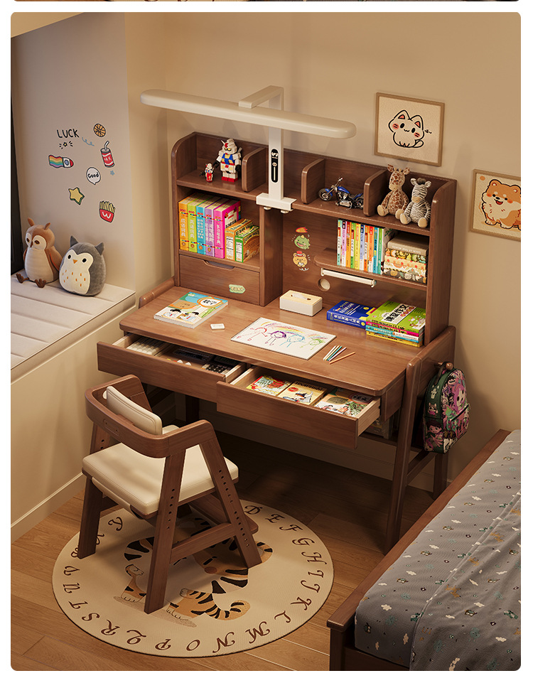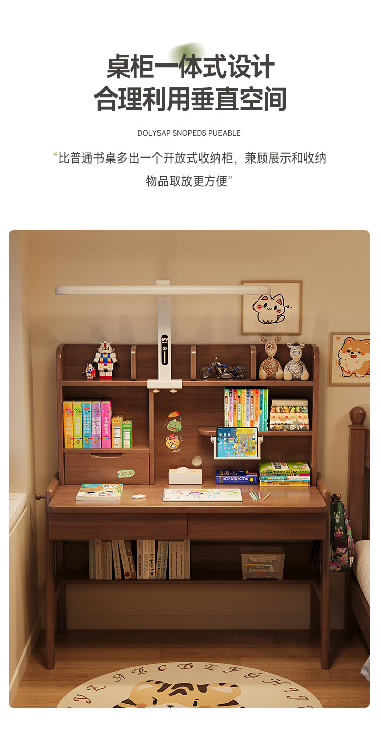선샤인 테이블 원목 책상 초등학생 집 쓰기 책상 침실 리프팅 어린이 학습 테이블 램프 테이블 통합