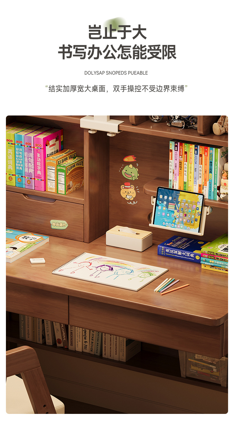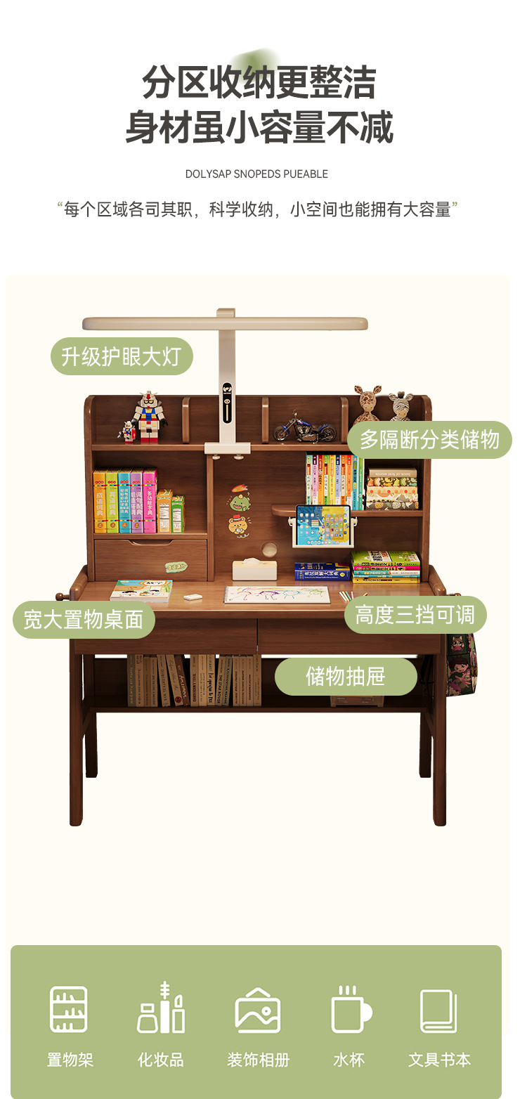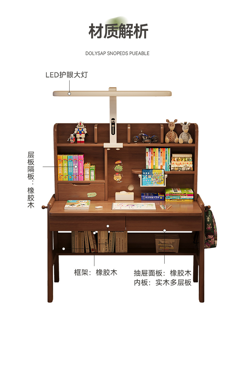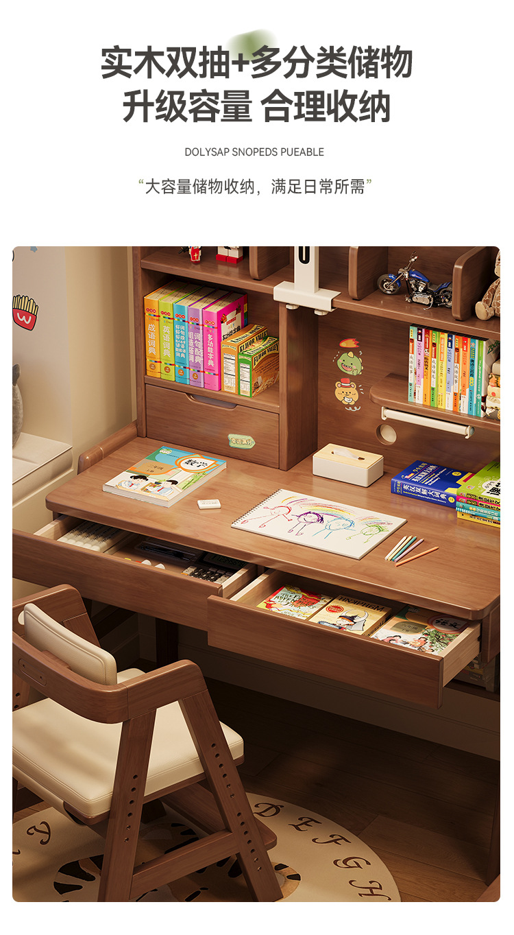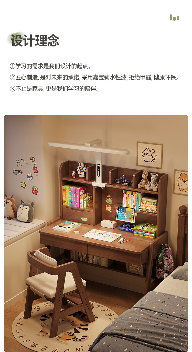 선샤인 테이블 원목 책상 초등학생 집 쓰기 책상 침실 리프팅 어린이 학습 테이블 램프 테이블 통합