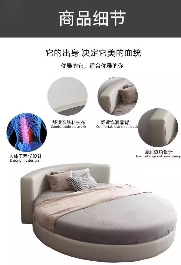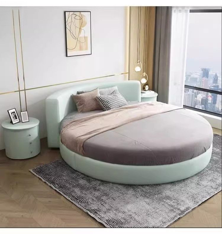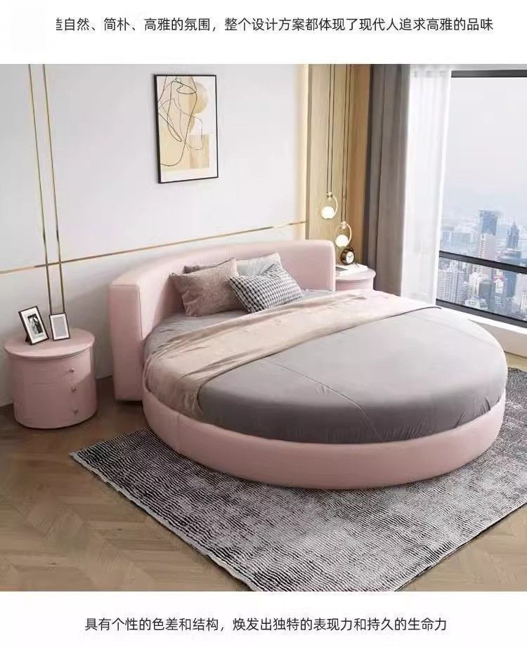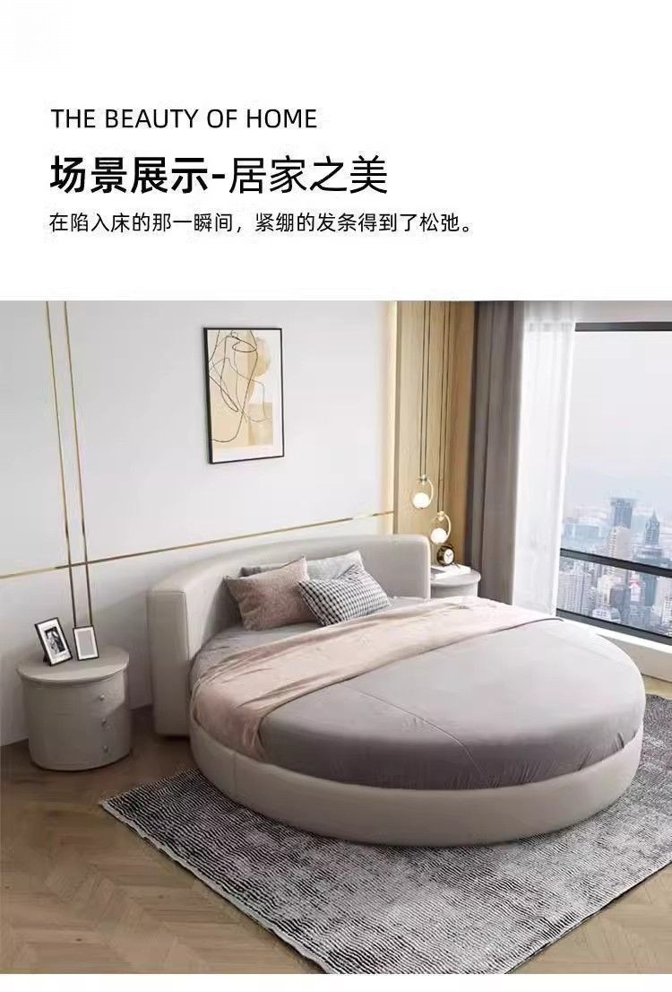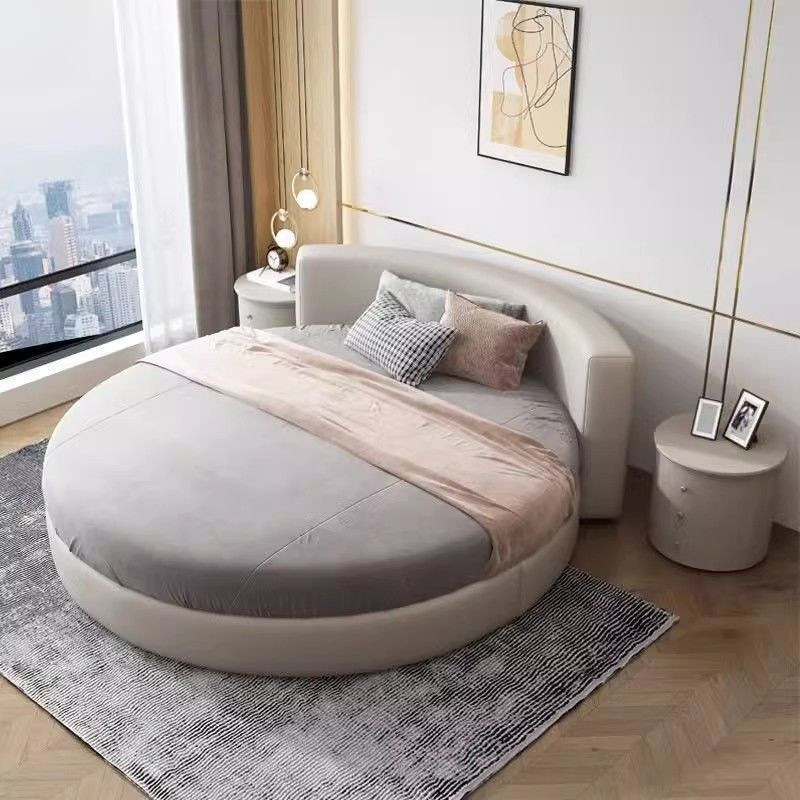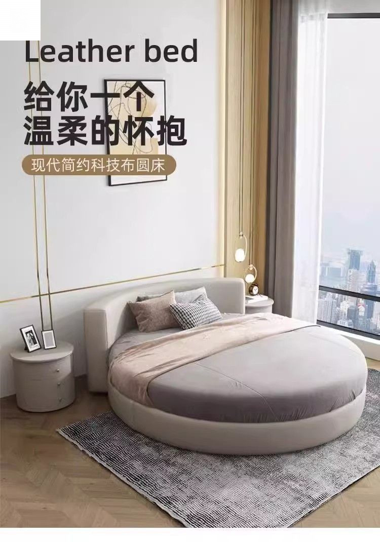 현대적인 원형 침대, 더블 침대, 미니멀하고 세련된 마스터 침실, 홈 웨딩 침대, 호텔 및 B&B 테마 패브릭 원형 소프트 침대