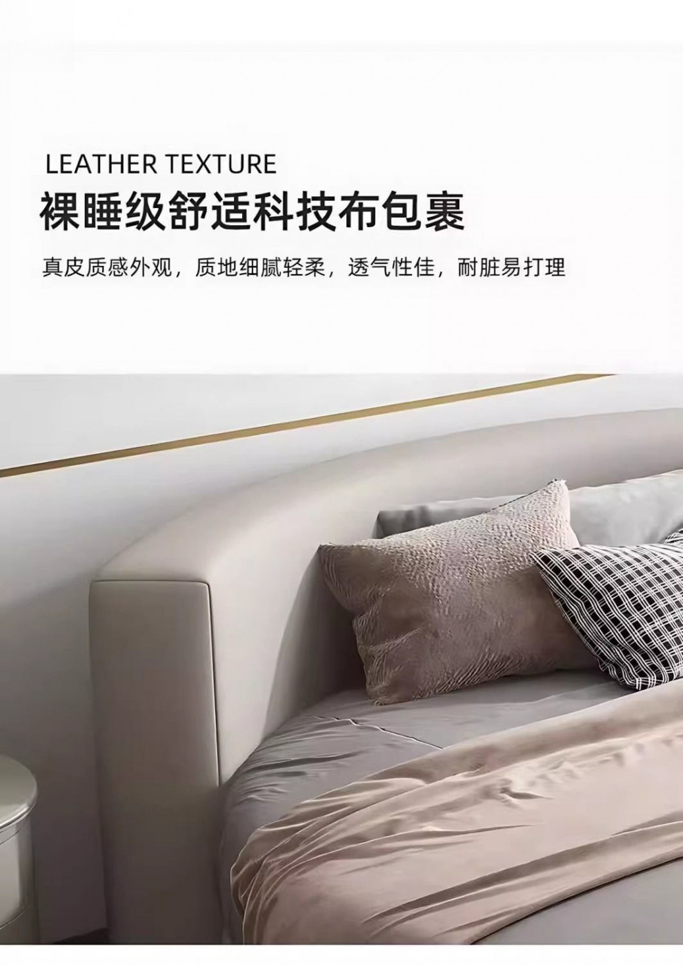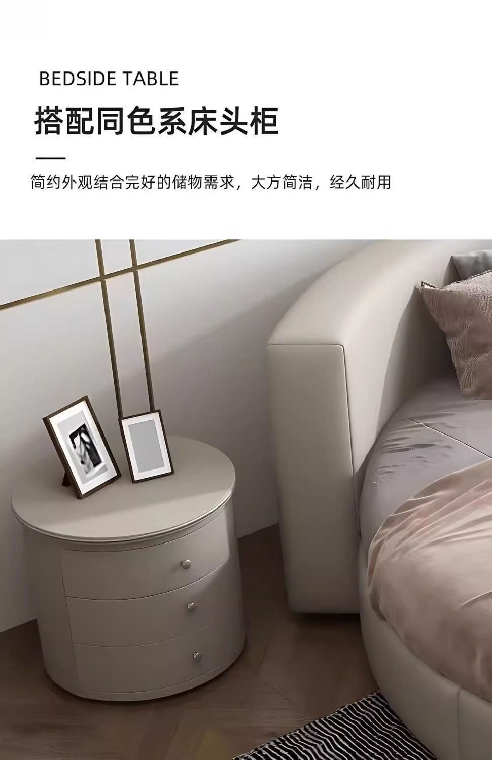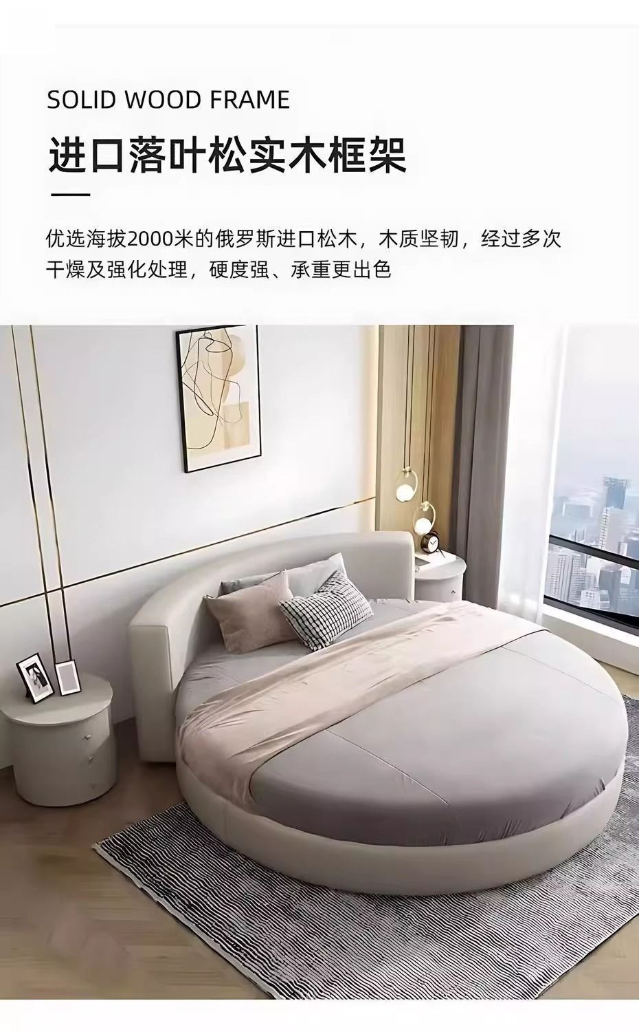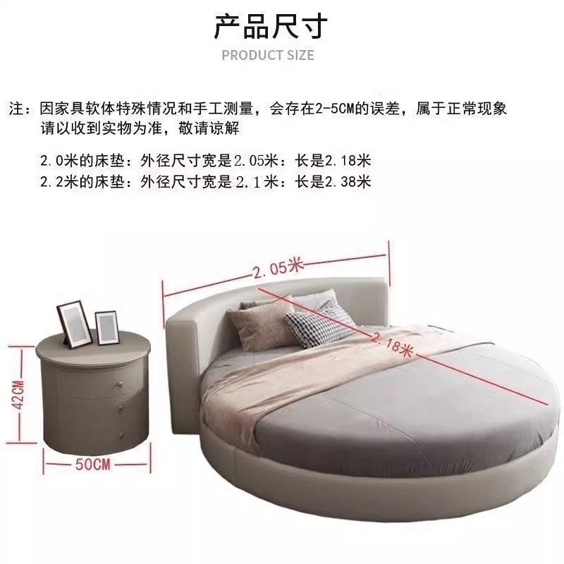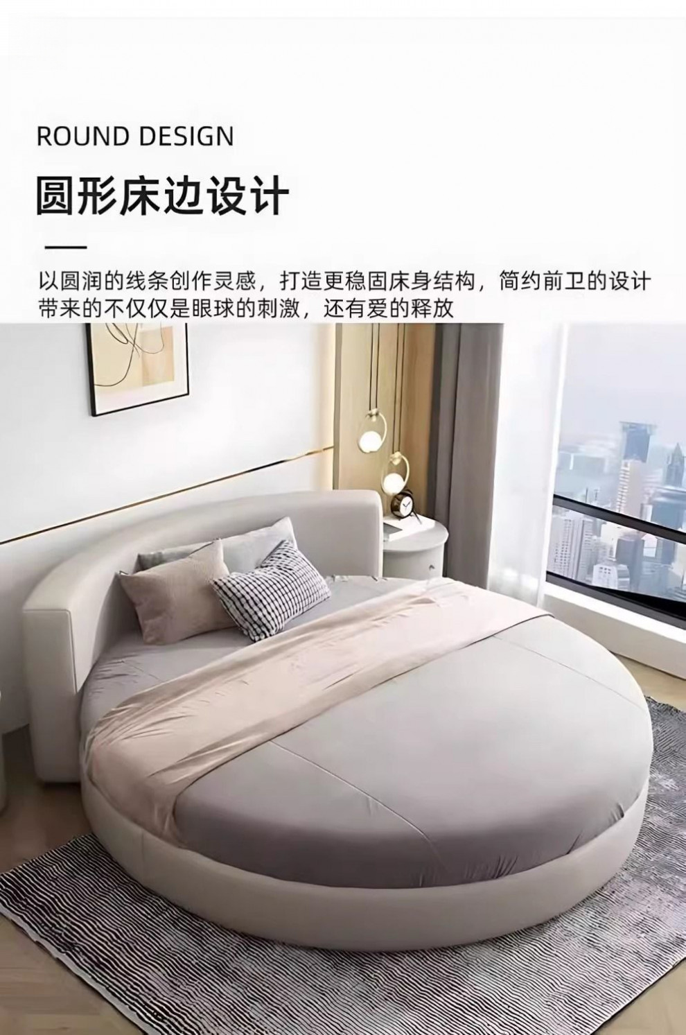 현대적인 원형 침대, 더블 침대, 미니멀하고 세련된 마스터 침실, 홈 웨딩 침대, 호텔 및 B&B 테마 패브릭 원형 소프트 침대