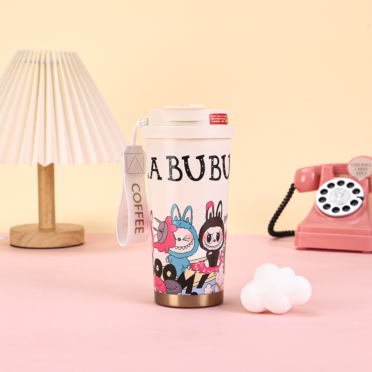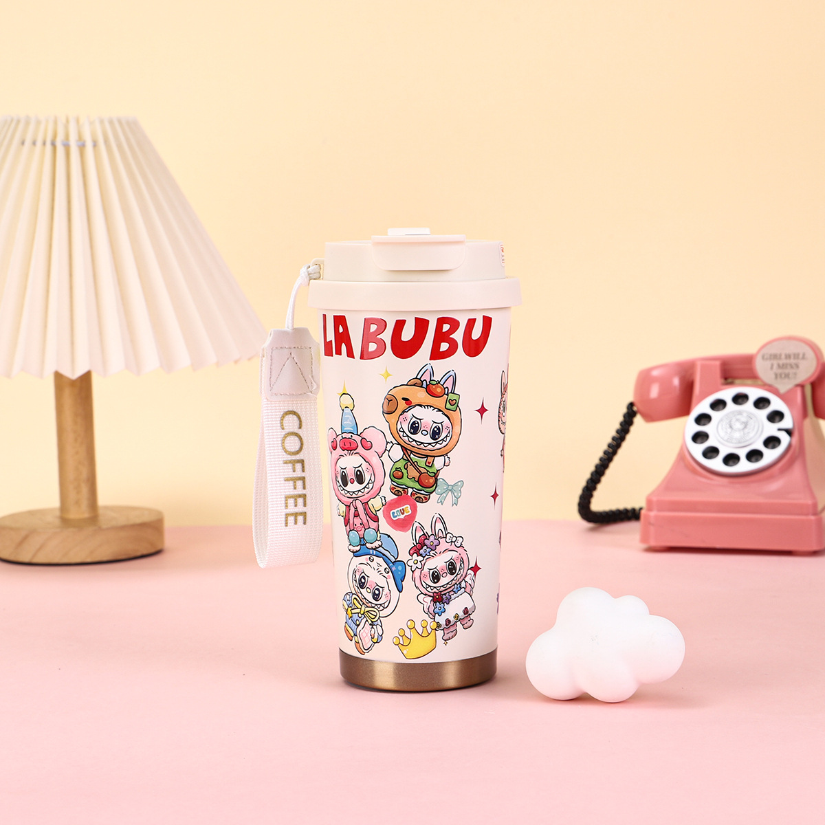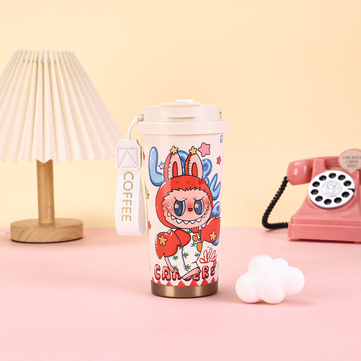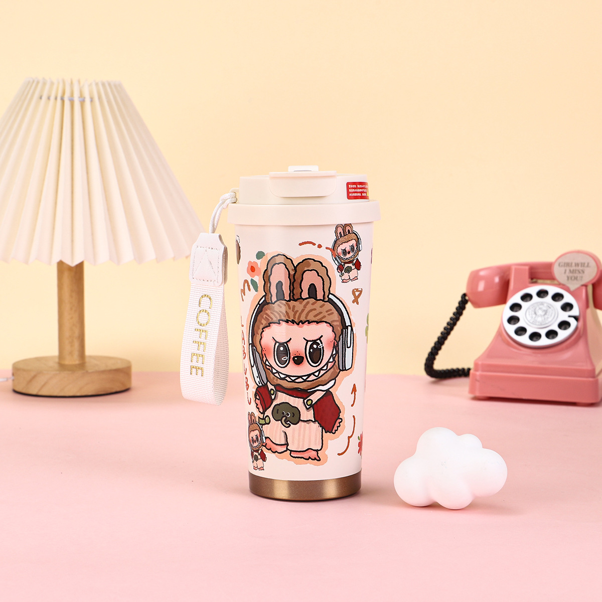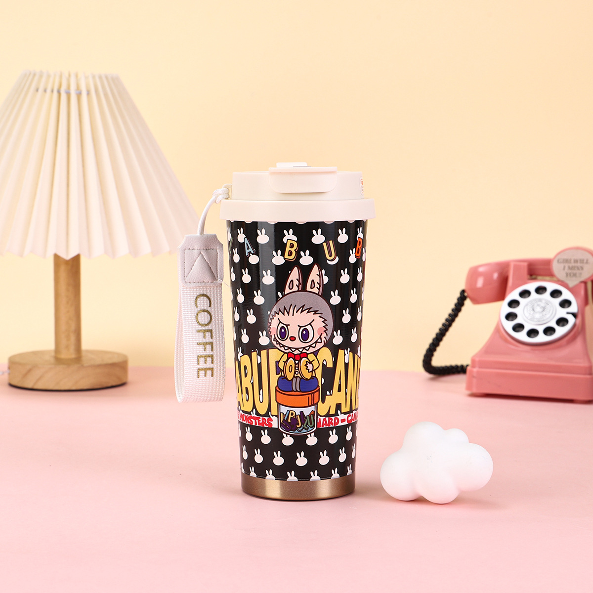 2025년형 크로스보더 316 스테인리스 컵, 고급스러운 디자인의 보온병, 라부부 패턴 3D 이중 빨대 커피컵