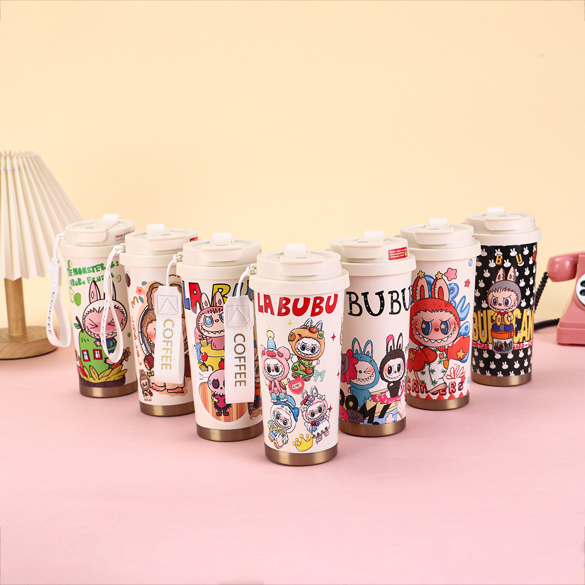 2025년형 크로스보더 316 스테인리스 컵, 고급스러운 디자인의 보온병, 라부부 패턴 3D 이중 빨대 커피컵스토어 가기