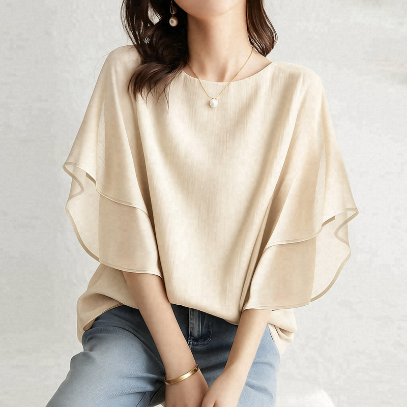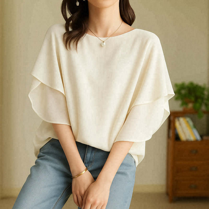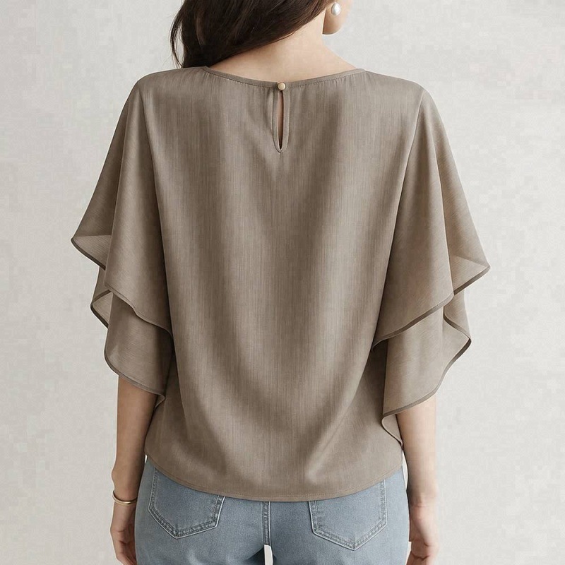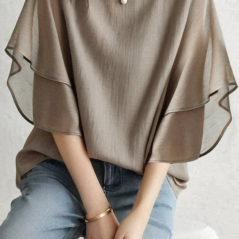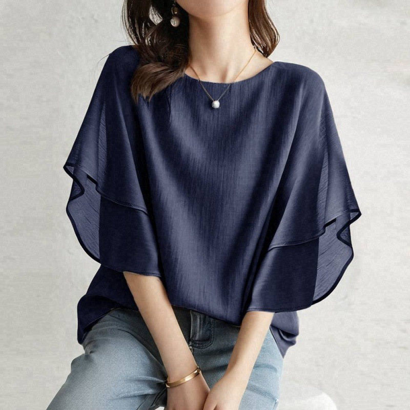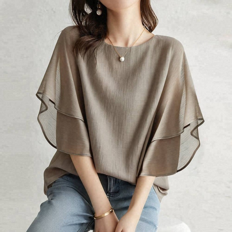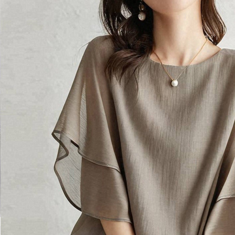 5 색 일본 롯데 여름 신작 반팔 배트 셔츠 루즈 라운드 넥 캐주얼 다목적 쉬폰 셔츠