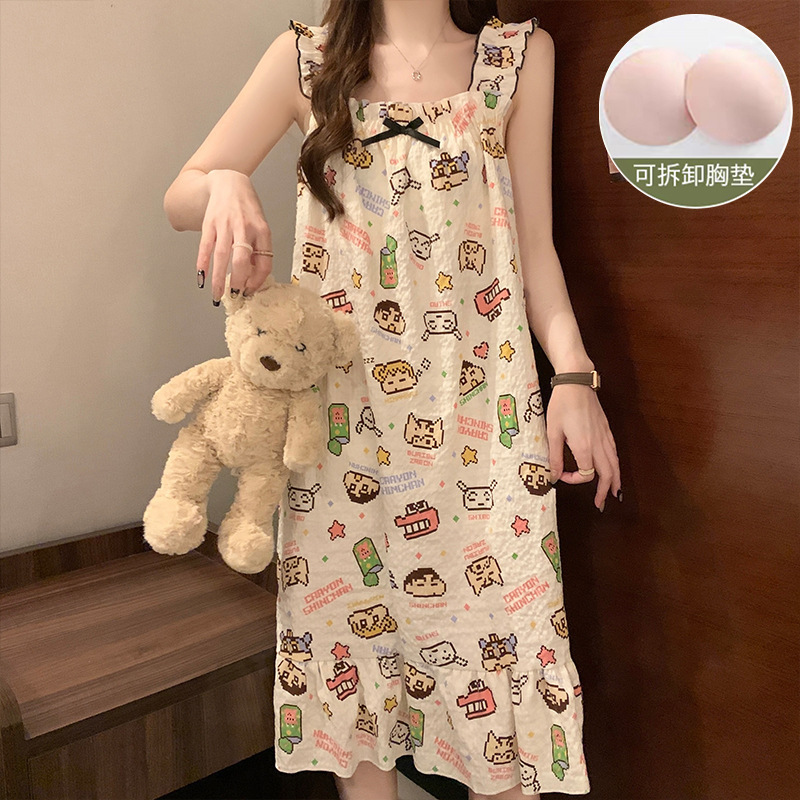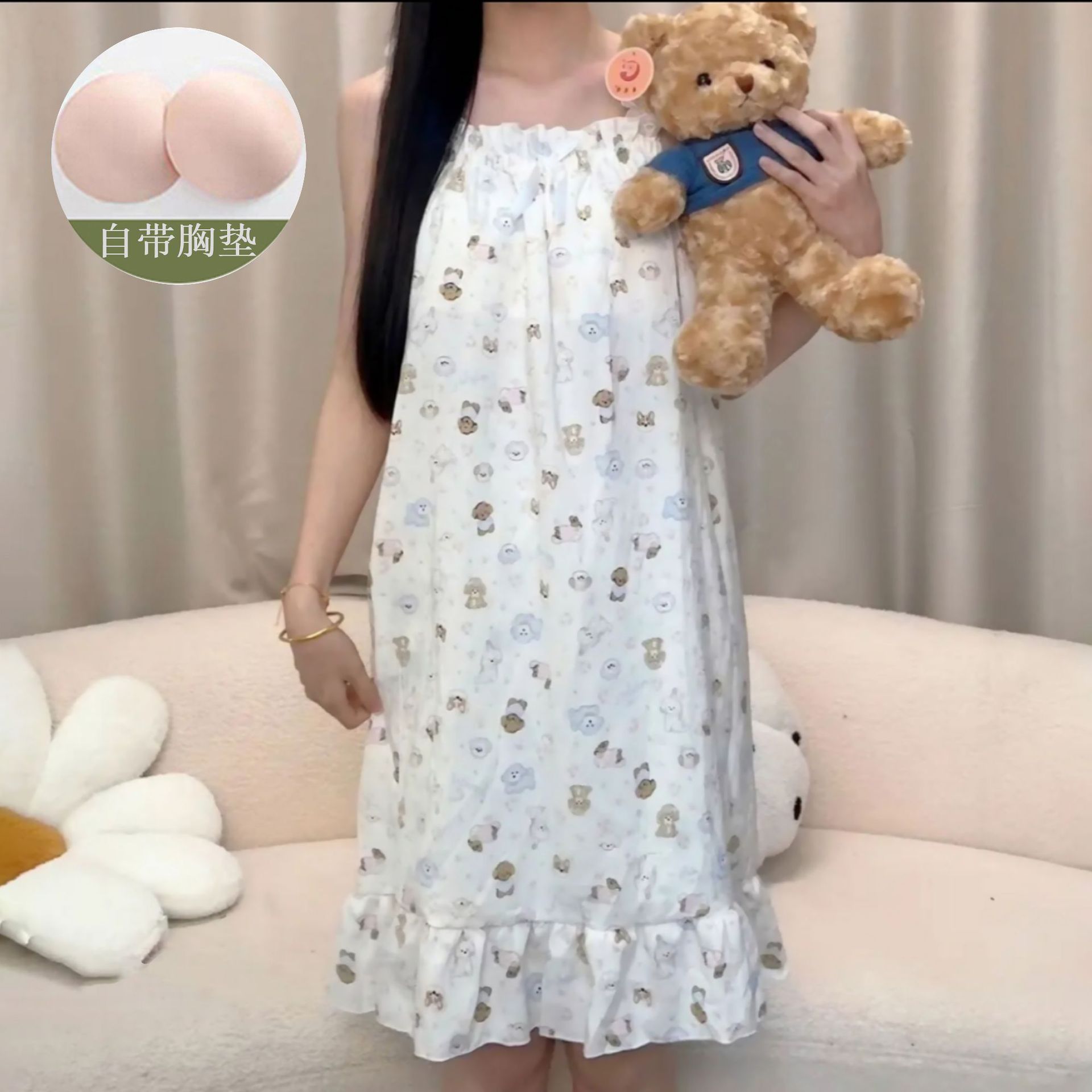 여성용 가슴 패드가 있는 클라우드 코튼 멜빵 슬립 드레스, 여름 민소매 섹시 잠옷, 2026년 신상 아우터웨어 미디 드레스스토어 가기