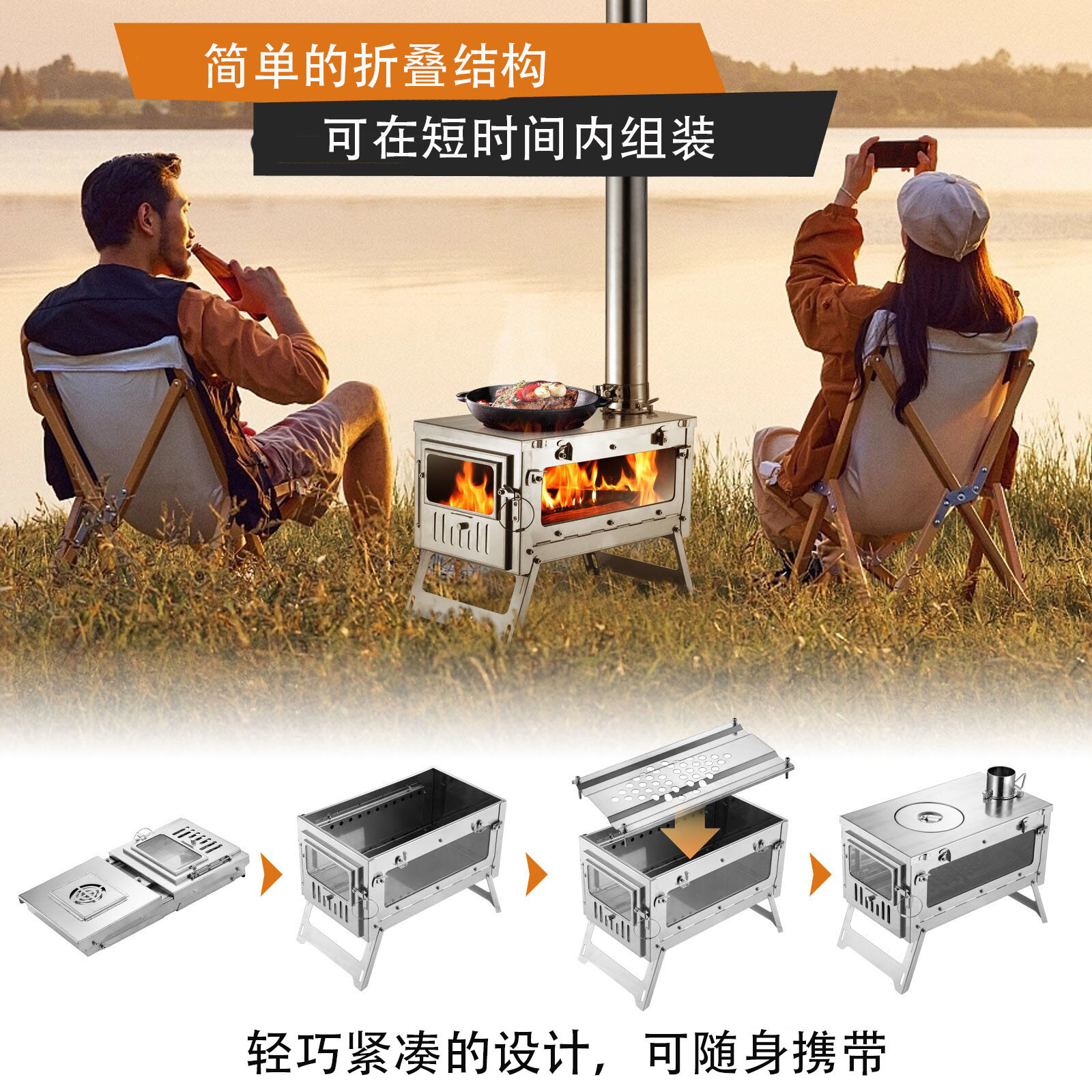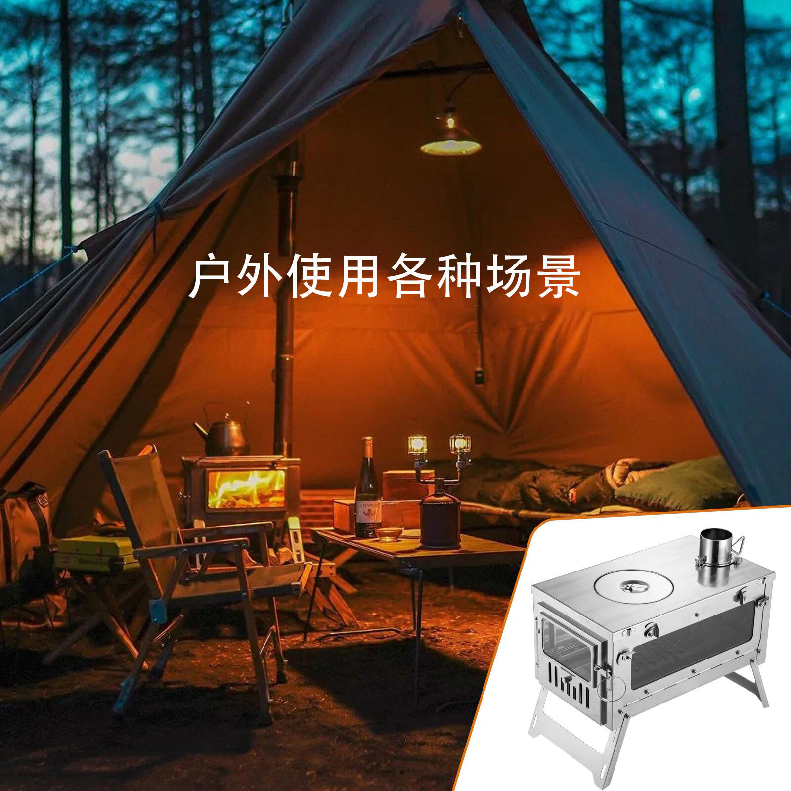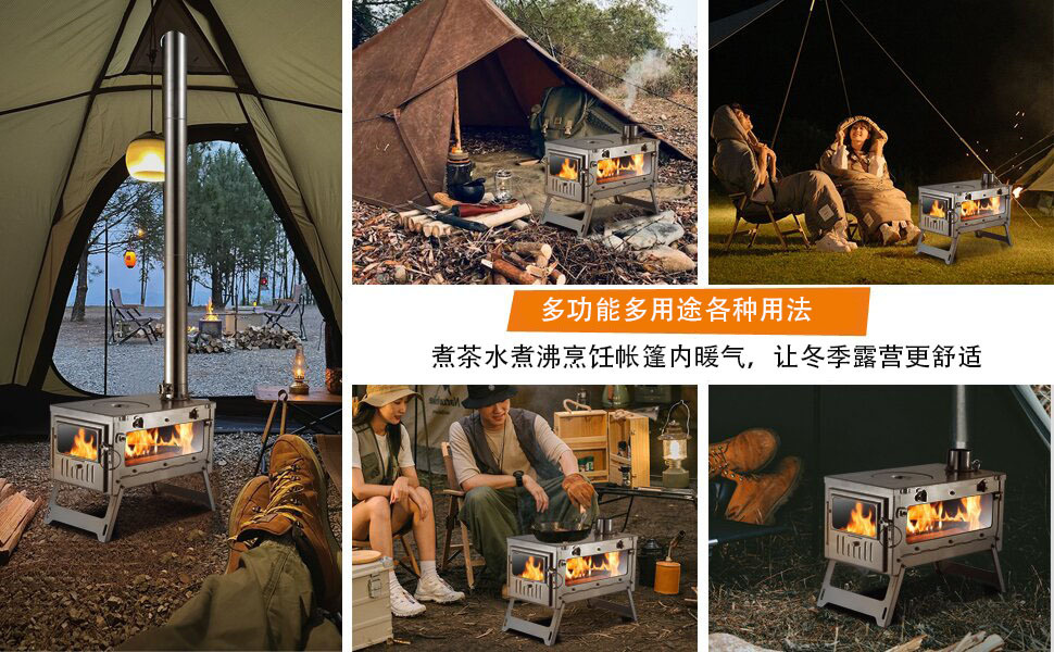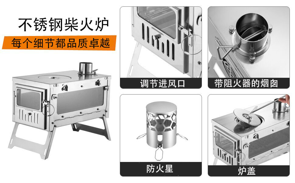户外折叠柴火炉野炊露营多功能烧水取暖炉野营便携式无烟帐篷炉