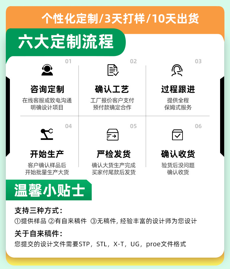 4、来图来样,3D打样,模具制造,请联系客服。