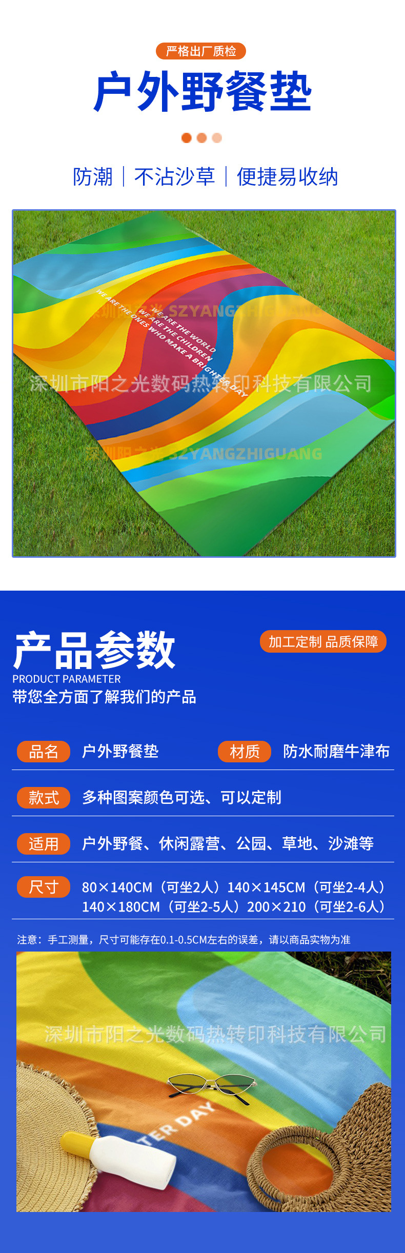 컬러풀한 피크닉 매트, 캠핑 및 자가 운전 여행용 두꺼운 야외 캠핑 매트, 방수 해변 매트, 야외 레저용 매트 공급