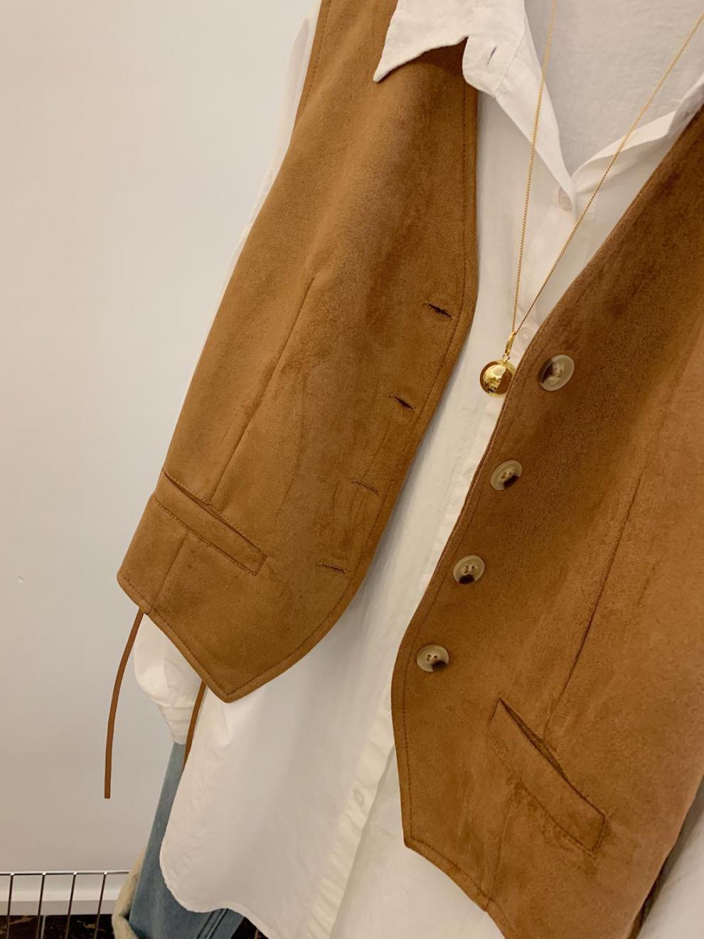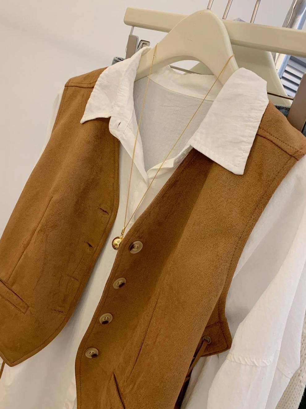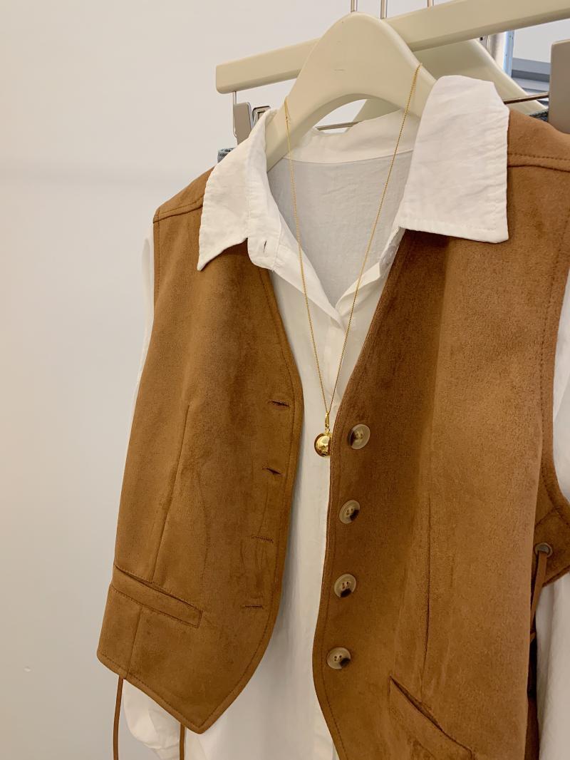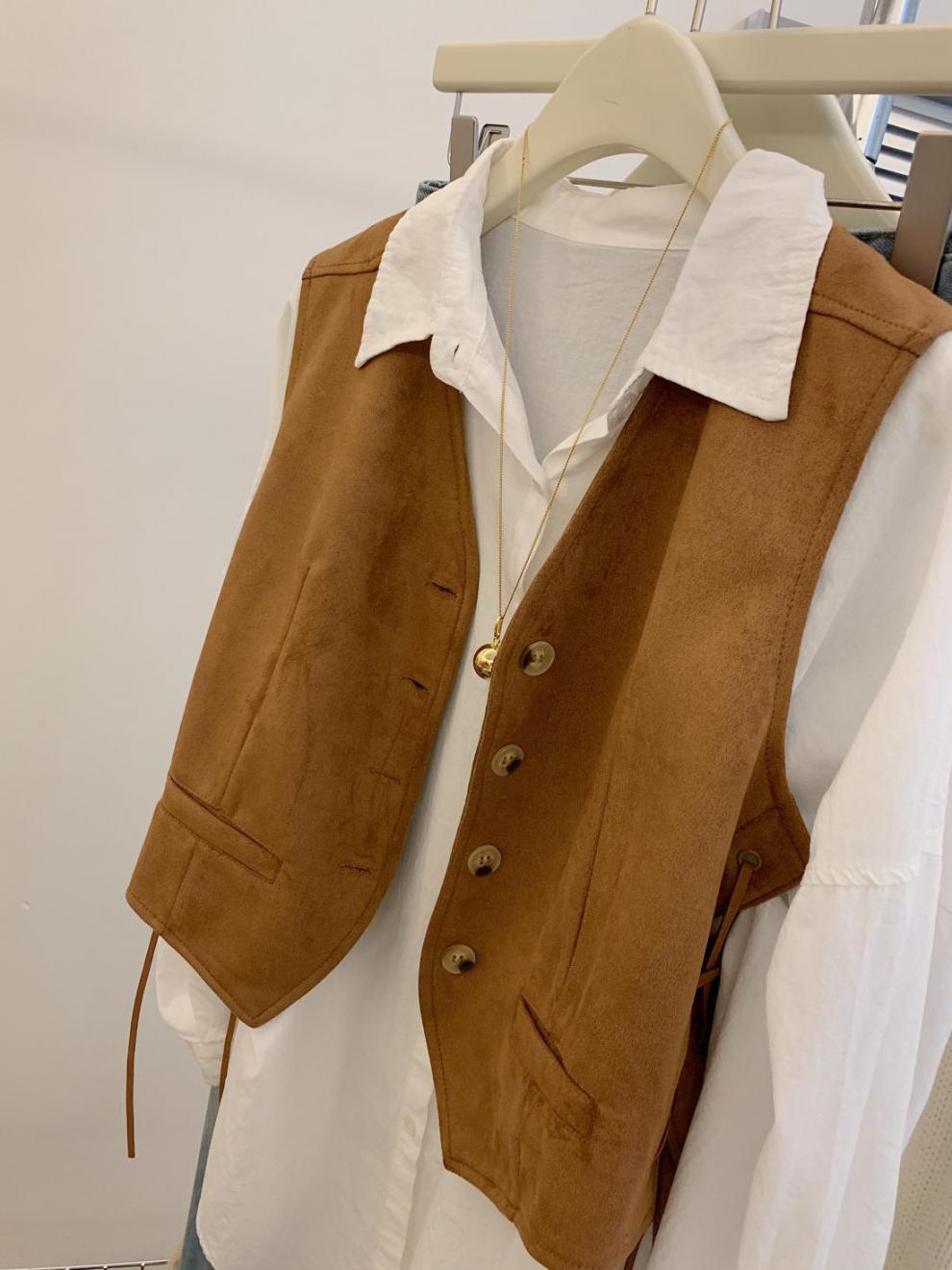 메일라드 스타일 레이스 업 스웨이드 조끼 여성 가을 디자인 틈새 캐주얼 짧은 칼라 조끼스토어 가기