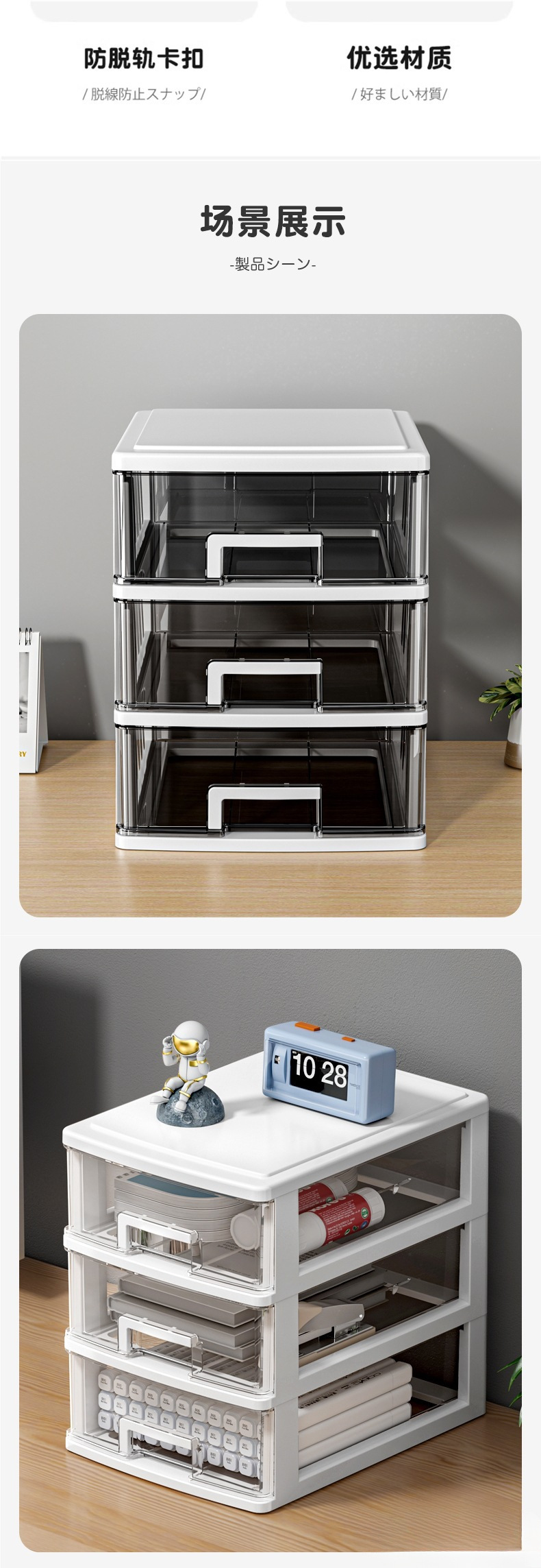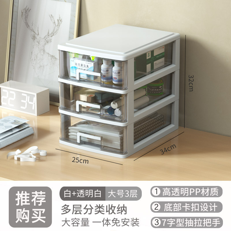 • 대형 3단(흰색+투명서랍)