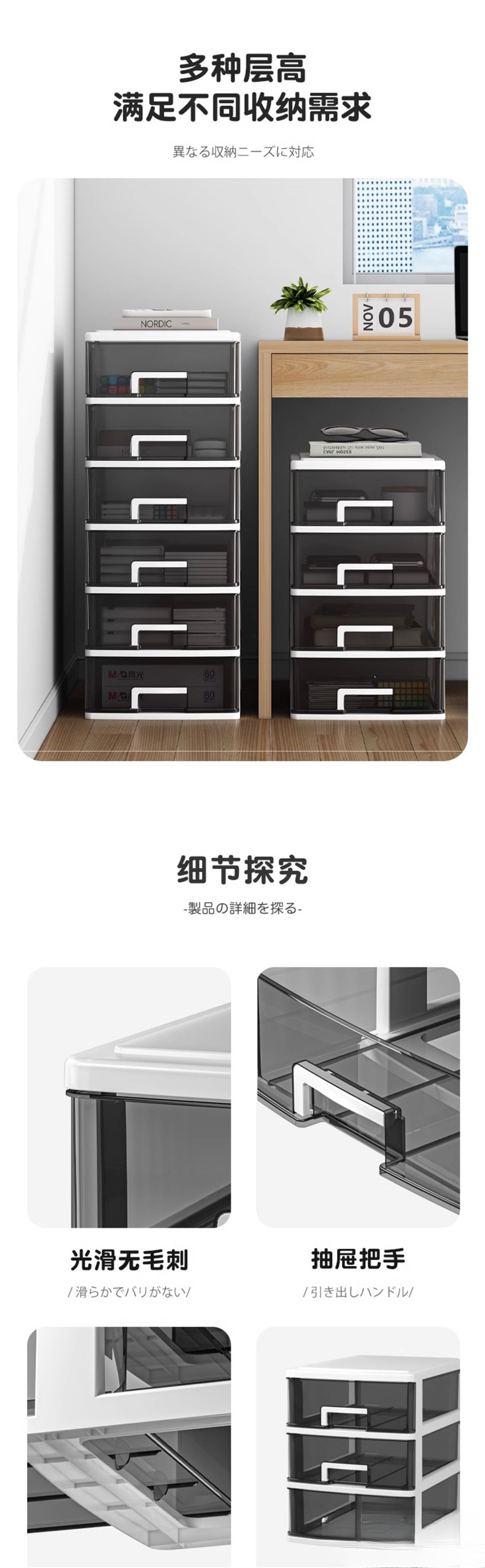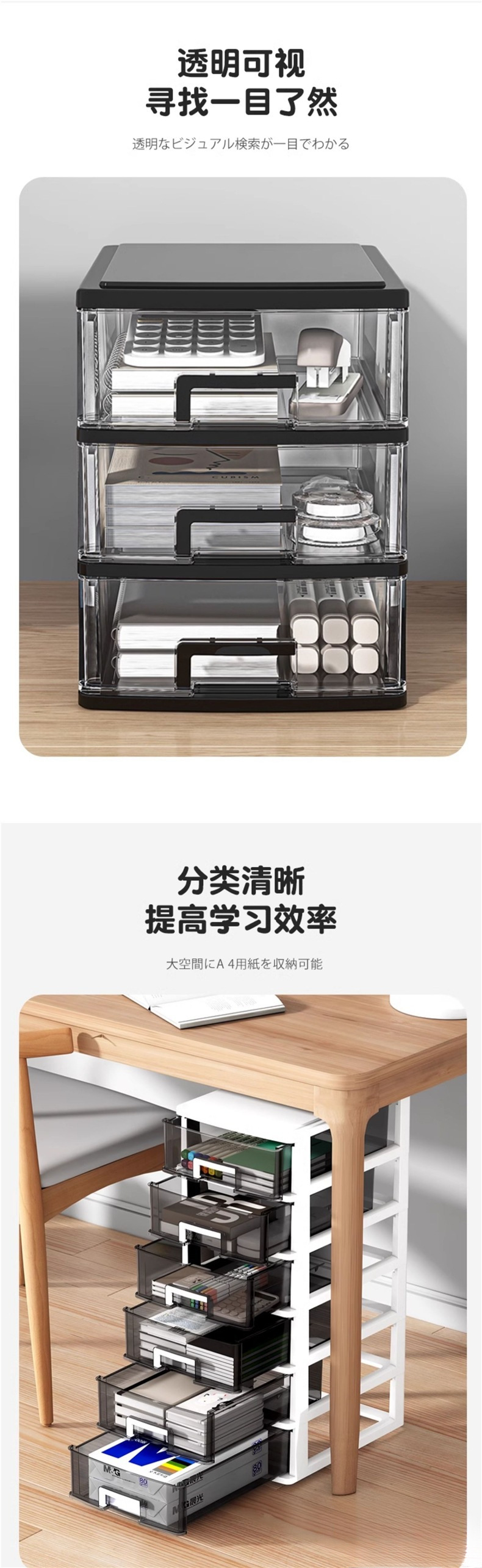 • 대형 4단(검정색+투명서랍)