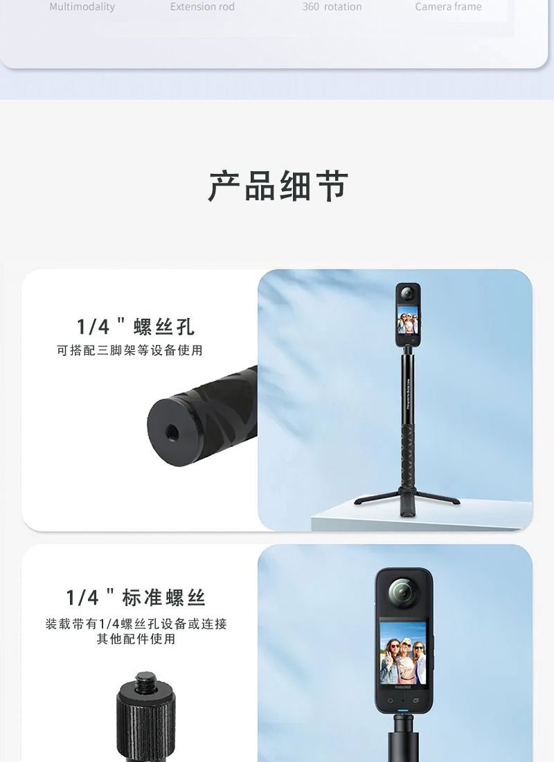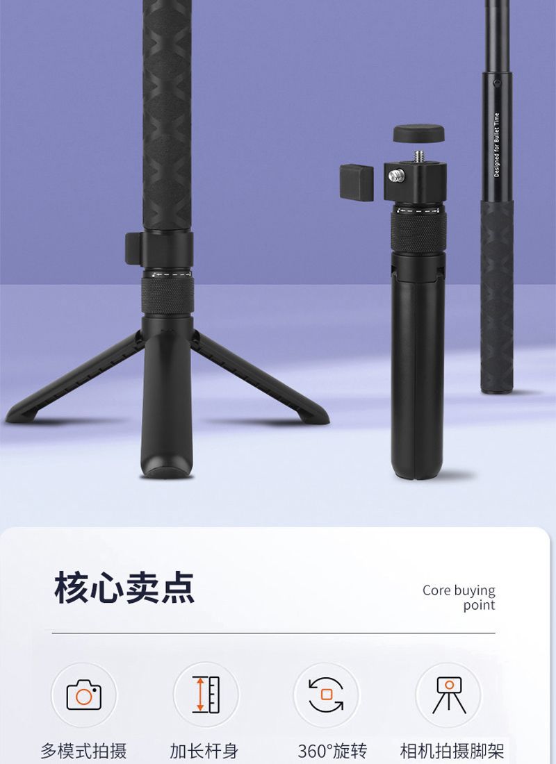Insta360 파노라마 액션 카메라 휴대용 연장 막대 야외 보이지 않는 셀카 스틱 브래킷에 적합스토어 가기