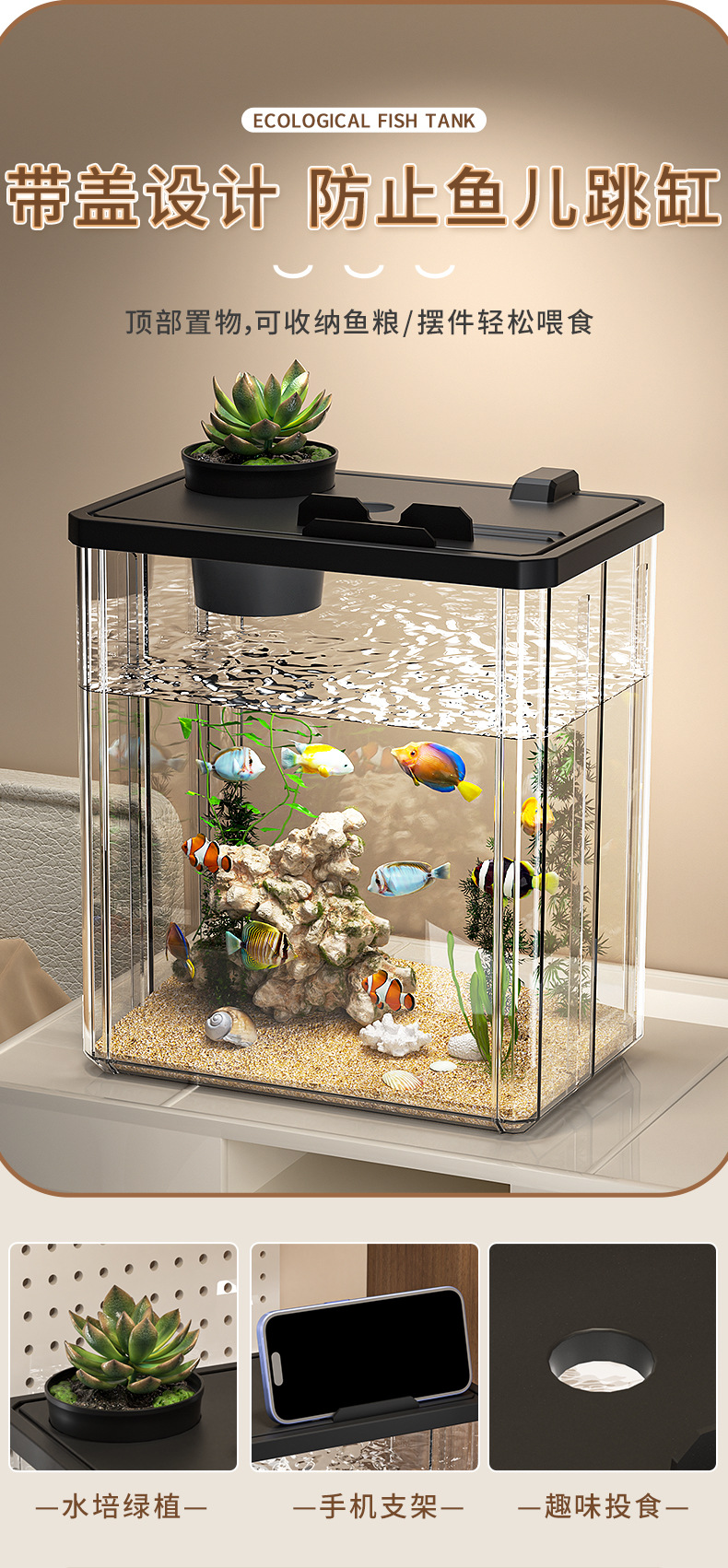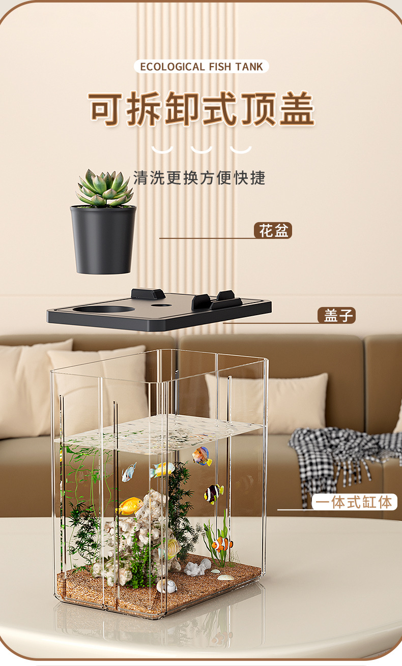 데스크탑 소형 수조 조경, 두꺼운 소형 생태 수조, 사무실 책상, 벨벳 물고기 수조, 올인원 수경 사육 상자