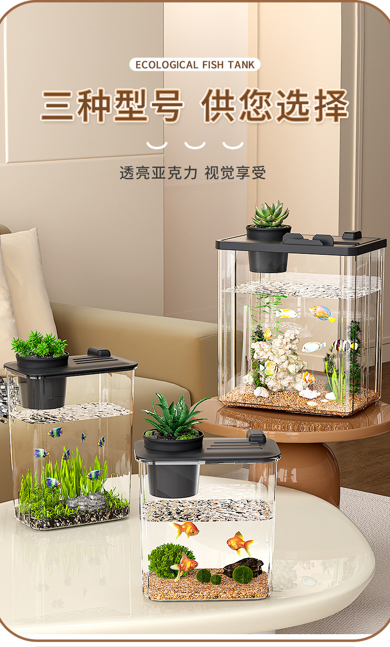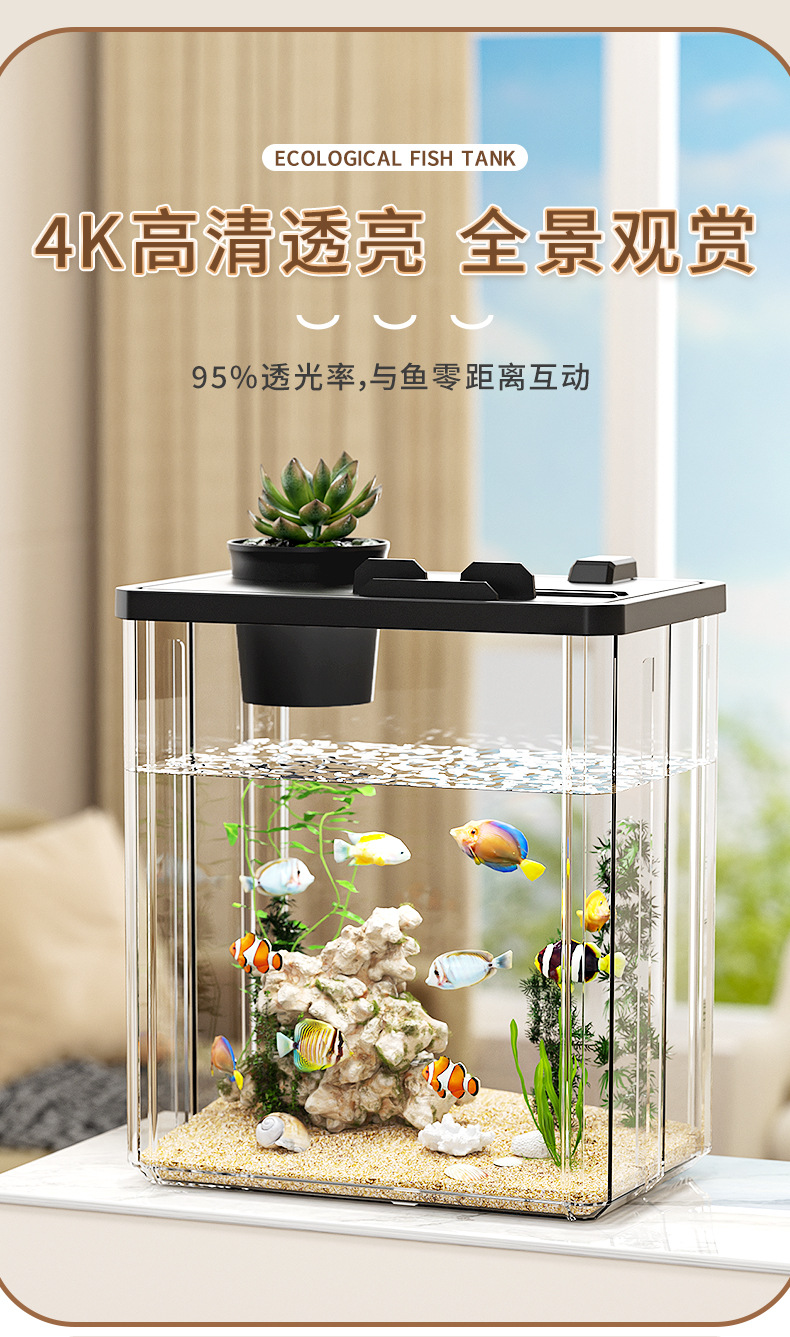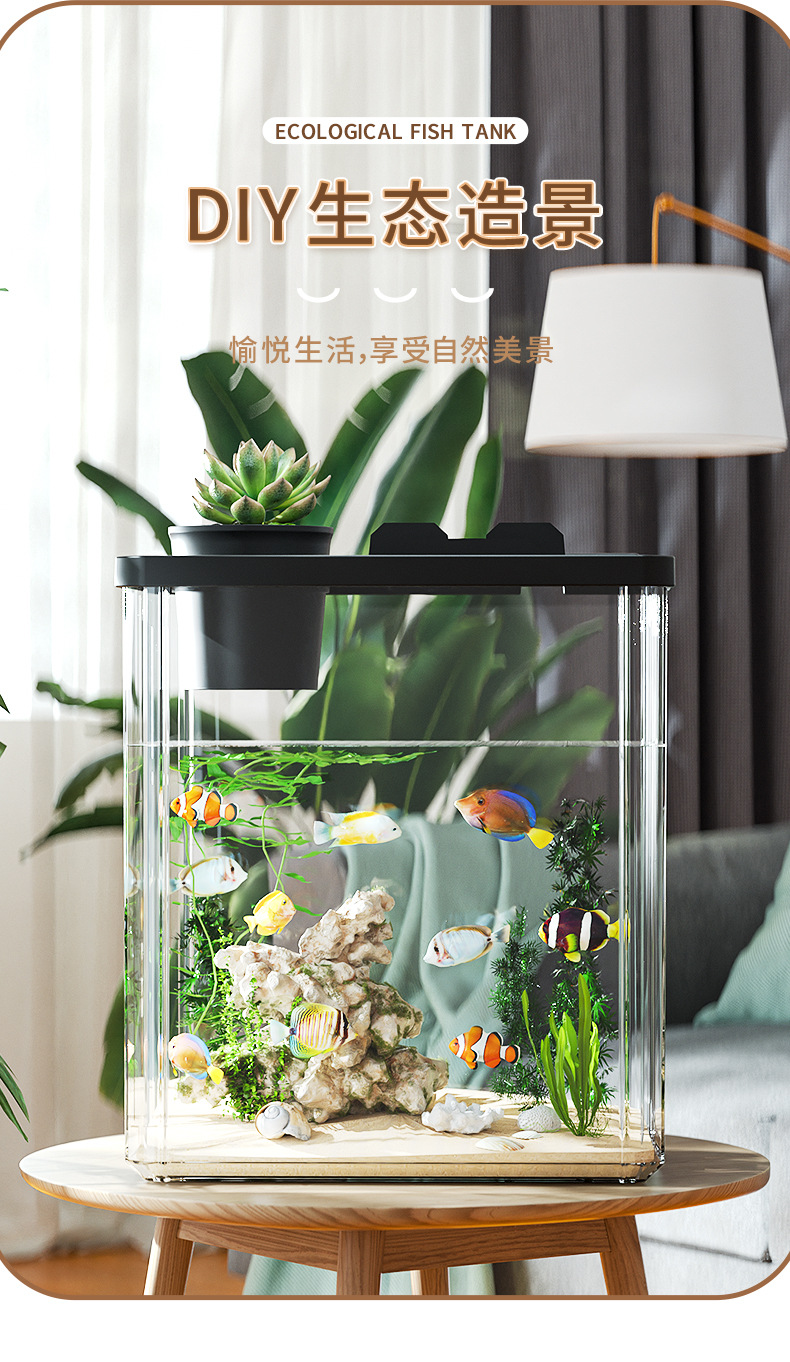 데스크탑 소형 수조 조경, 두꺼운 소형 생태 수조, 사무실 책상, 벨벳 물고기 수조, 올인원 수경 사육 상자스토어 가기