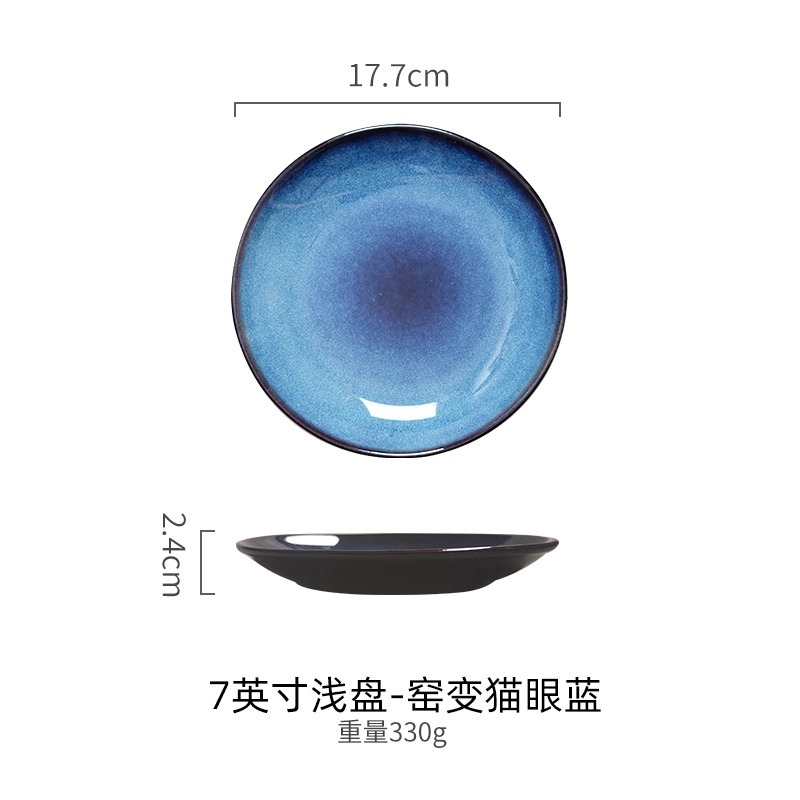 • 7inch 얕은 접시 - 가마에서 제작한 캣츠아이 블루