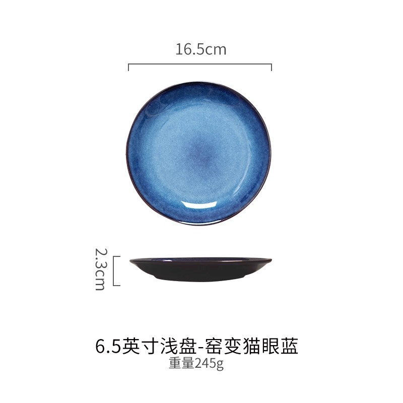 • 6.5inch 얕은 접시 - 가마에서 제작한 캣츠아이 블루