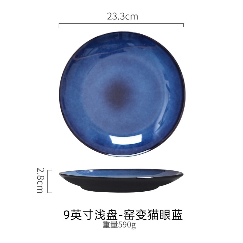 • 9inch 얕은 접시 - 가마에서 제작한 캣츠아이 블루