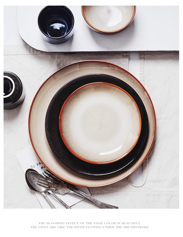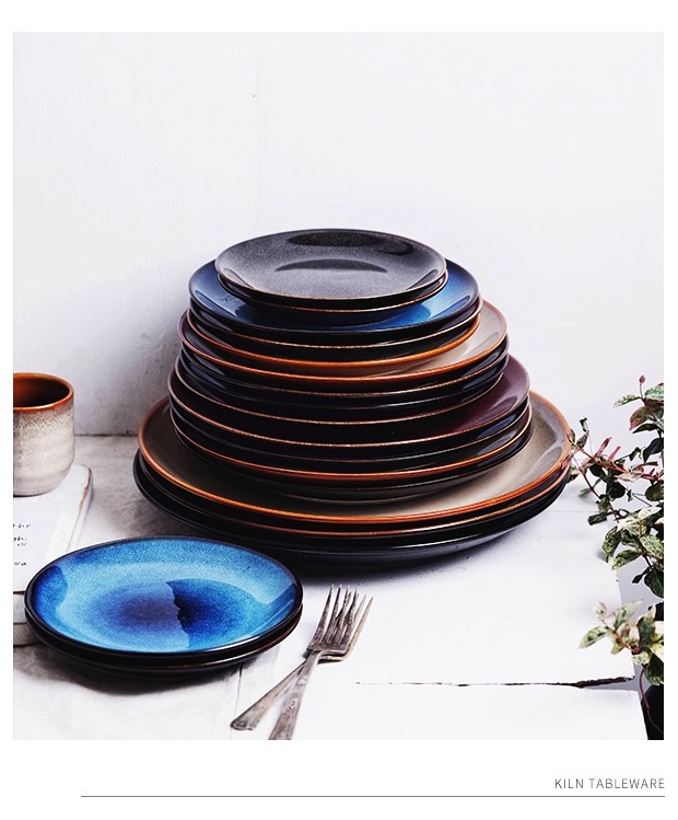 국경 간 복고풍 창조적 인 가마 변형 세라믹 샐러드 접시 둥근 얕은 접시 평면 접시 호텔 레스토랑 서양 스테이크 접시 가정용스토어 가기