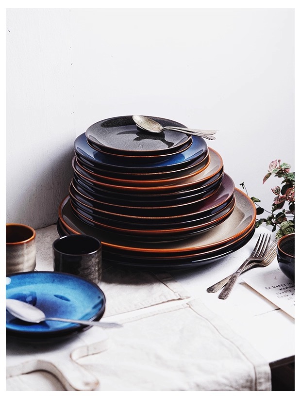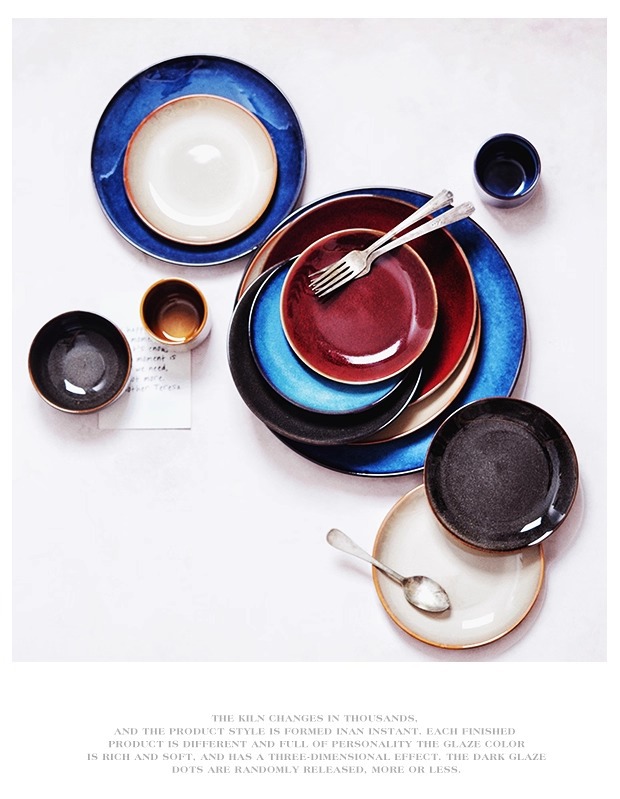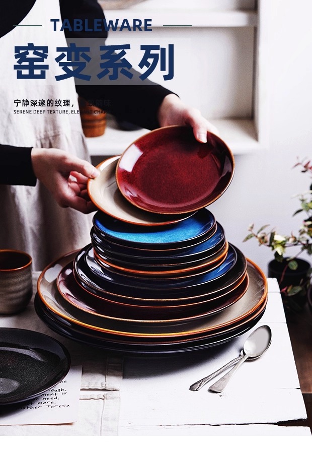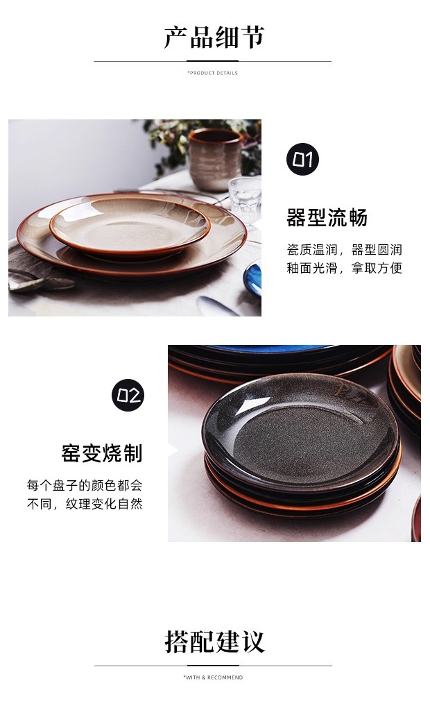 국경 간 복고풍 창조적 인 가마 변형 세라믹 샐러드 접시 둥근 얕은 접시 평면 접시 호텔 레스토랑 서양 스테이크 접시 가정용