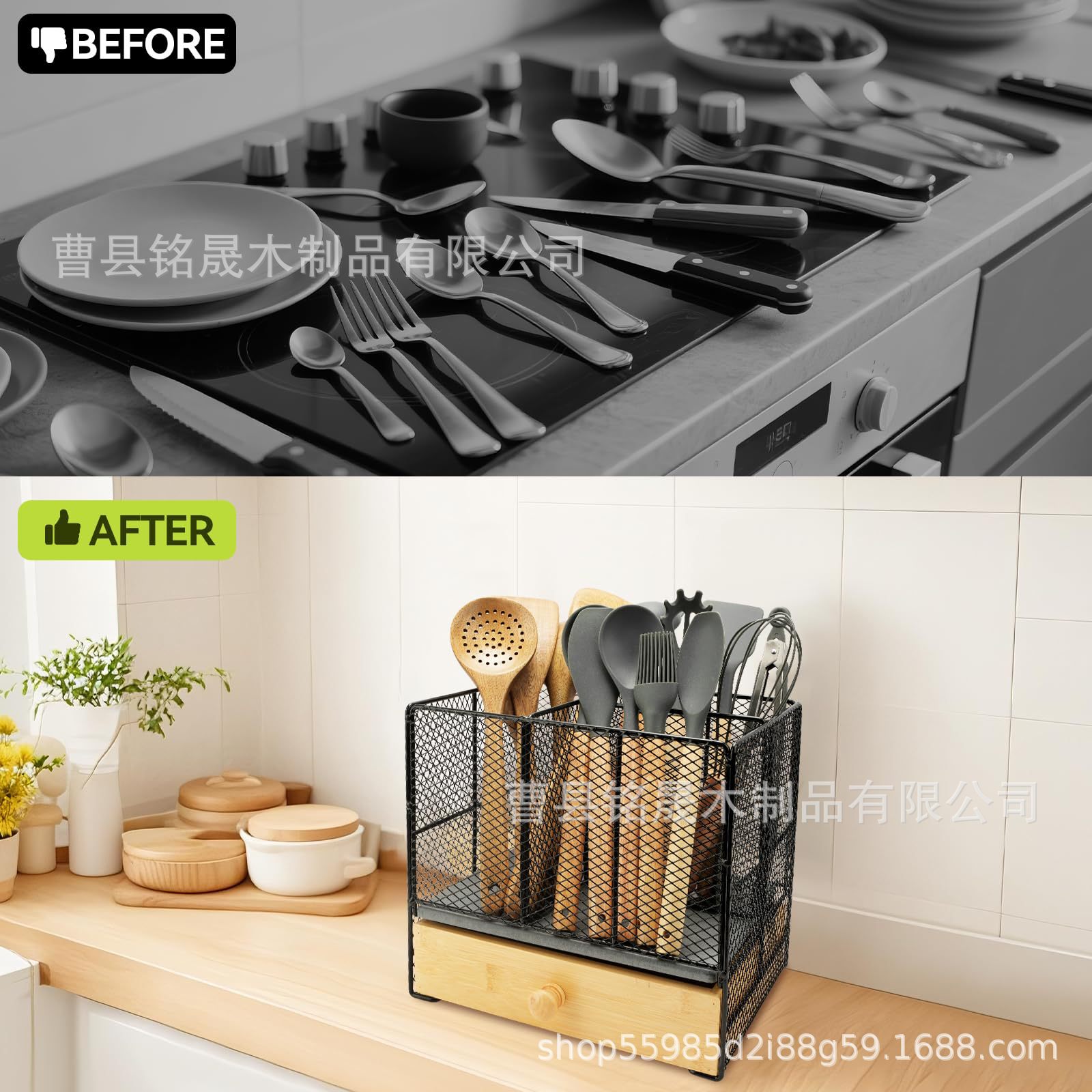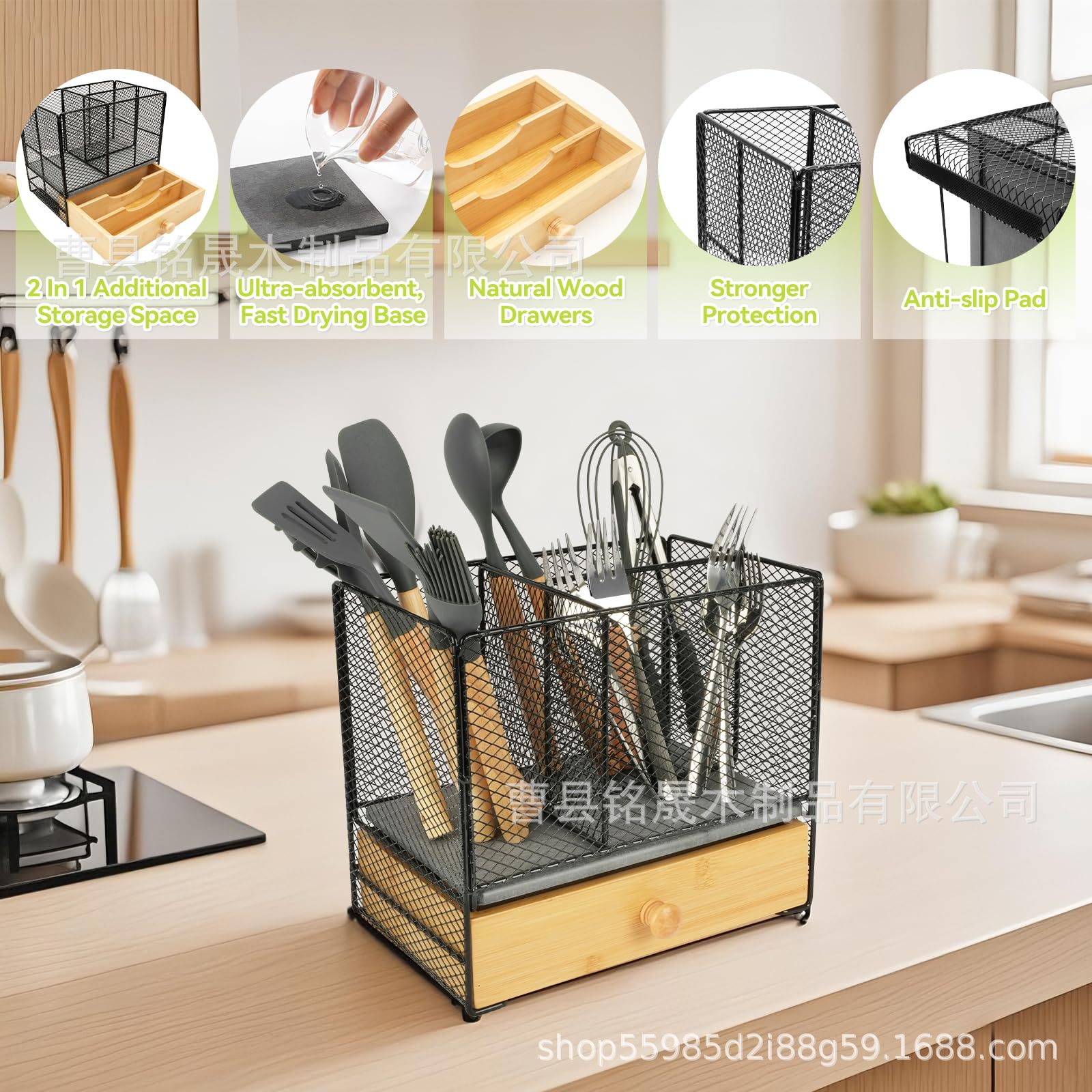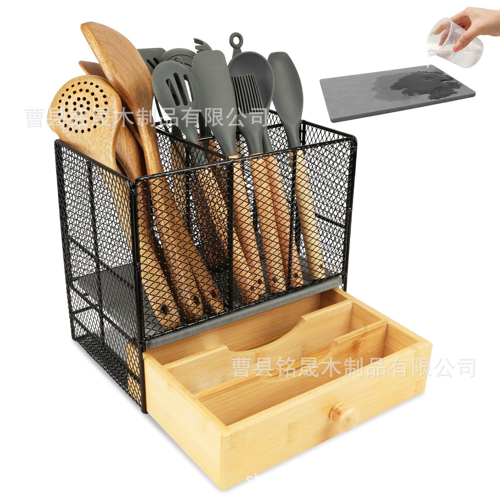 나무 식기 보관 상자 주방 조리대 이동식 조리 도구 홀더 칼, 포크, 스푼 및 젓가락 보관 상자 캐비닛