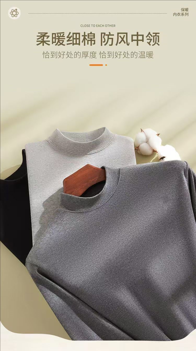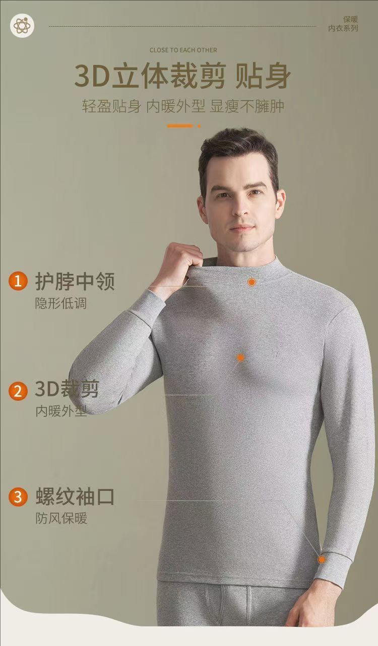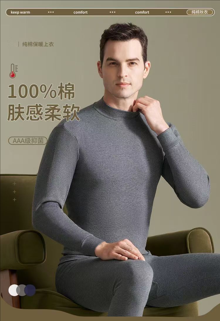 [100%] 순면 보온 속옷 세트 남성용 미드 하이 칼라 가을 옷과 긴 바지 방한 속건성 순면 베이스 잠옷스토어 가기