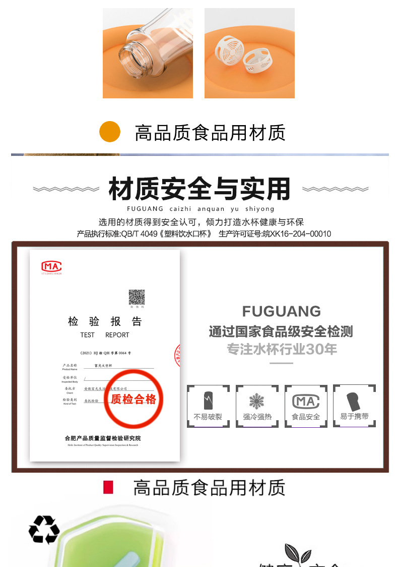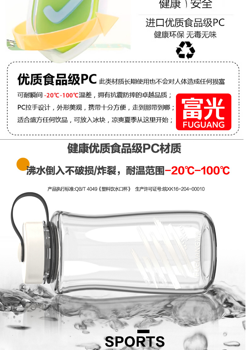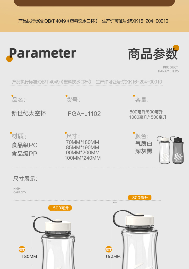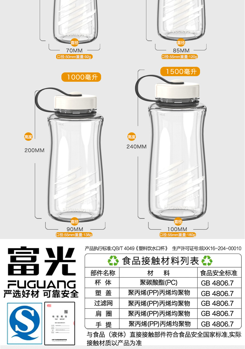 Fuguang 대용량 물 컵, 낙하 방지 공간 컵, 방폭형 플라스틱 컵, 남성 및 여성 건설 현장 스포츠 휴대용 고온 방지 주전자