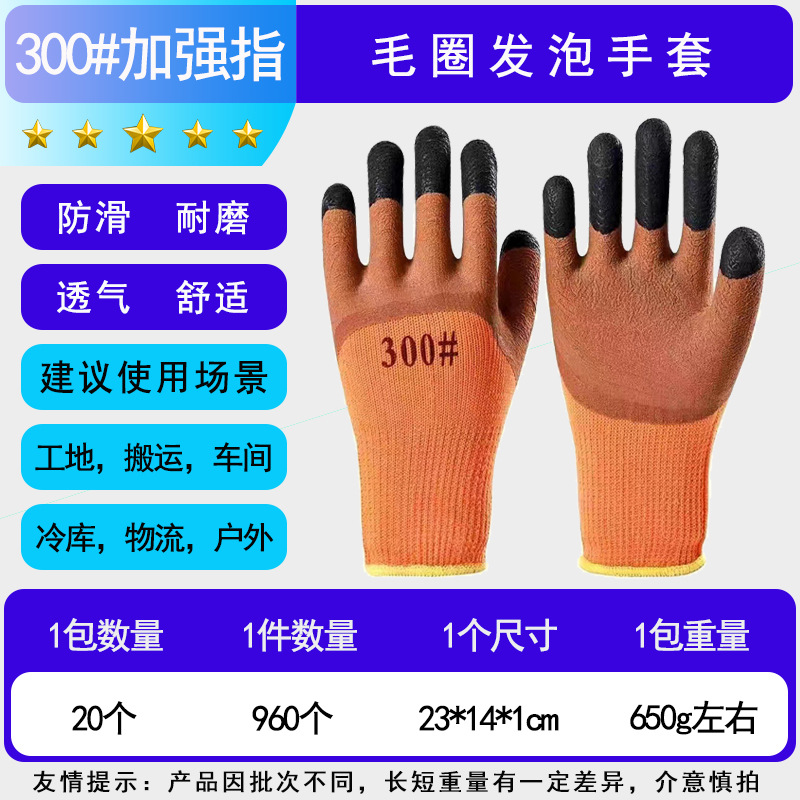 테리폼 플러스 벨벳 플러스 두꺼운 라텍스 300 # 장갑 강화 손가락 점착 노동 보호 장갑 겨울 건설 현장 장갑