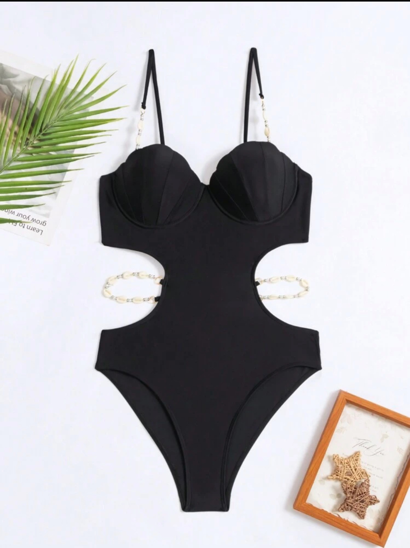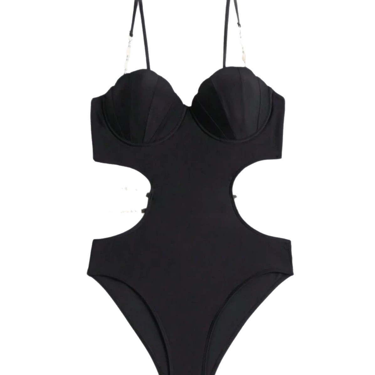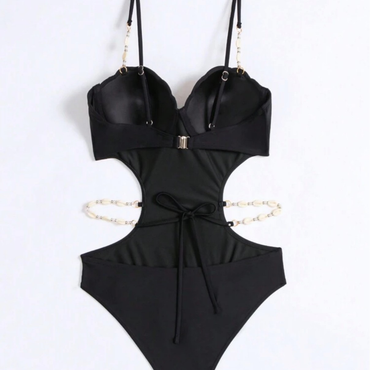 국경 간 유럽과 미국의 원피스 수영복 섹시한 솔리드 컬러 비키니 골지 중공 체인 비치 백리스 여성 수영복스토어 가기