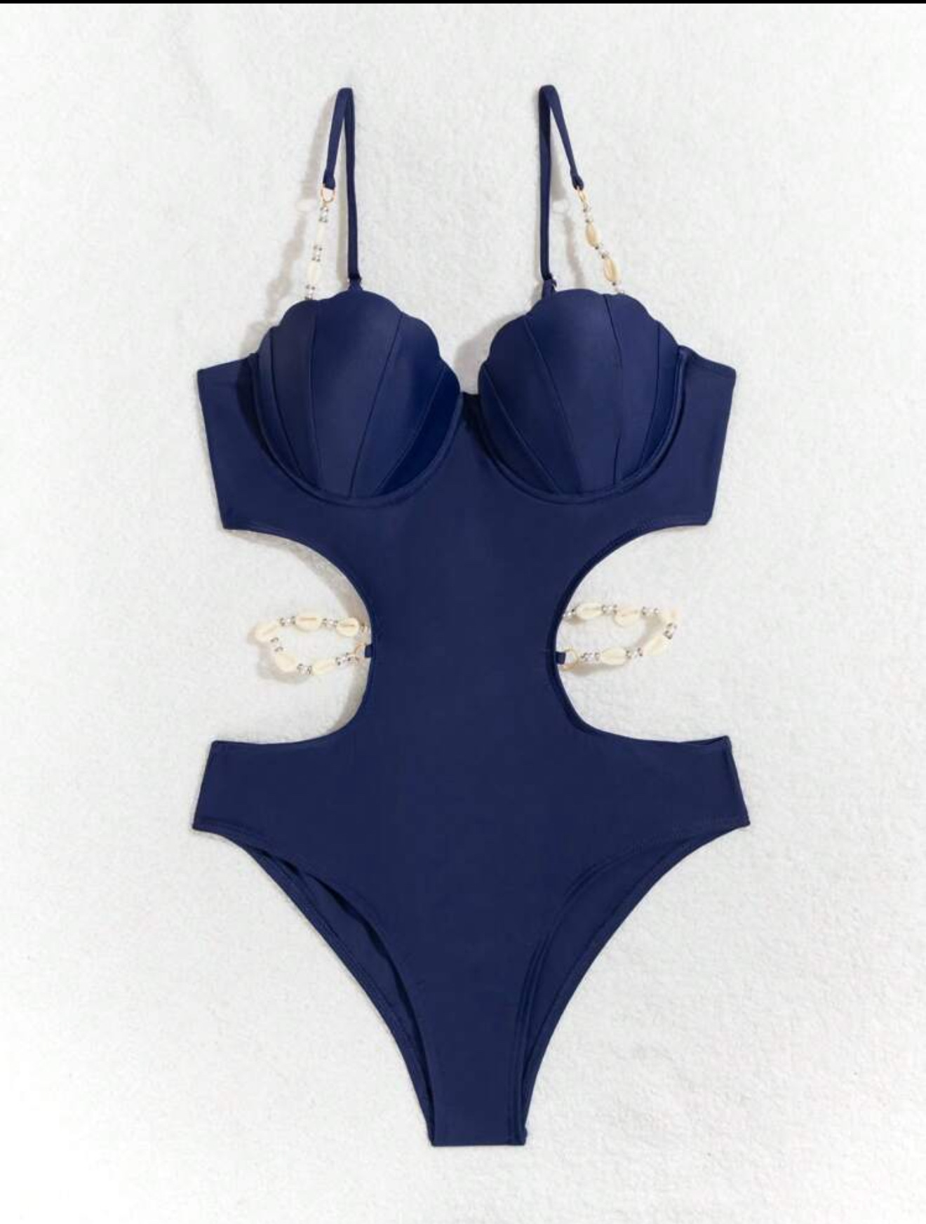 국경 간 유럽과 미국의 원피스 수영복 섹시한 솔리드 컬러 비키니 골지 중공 체인 비치 백리스 여성 수영복