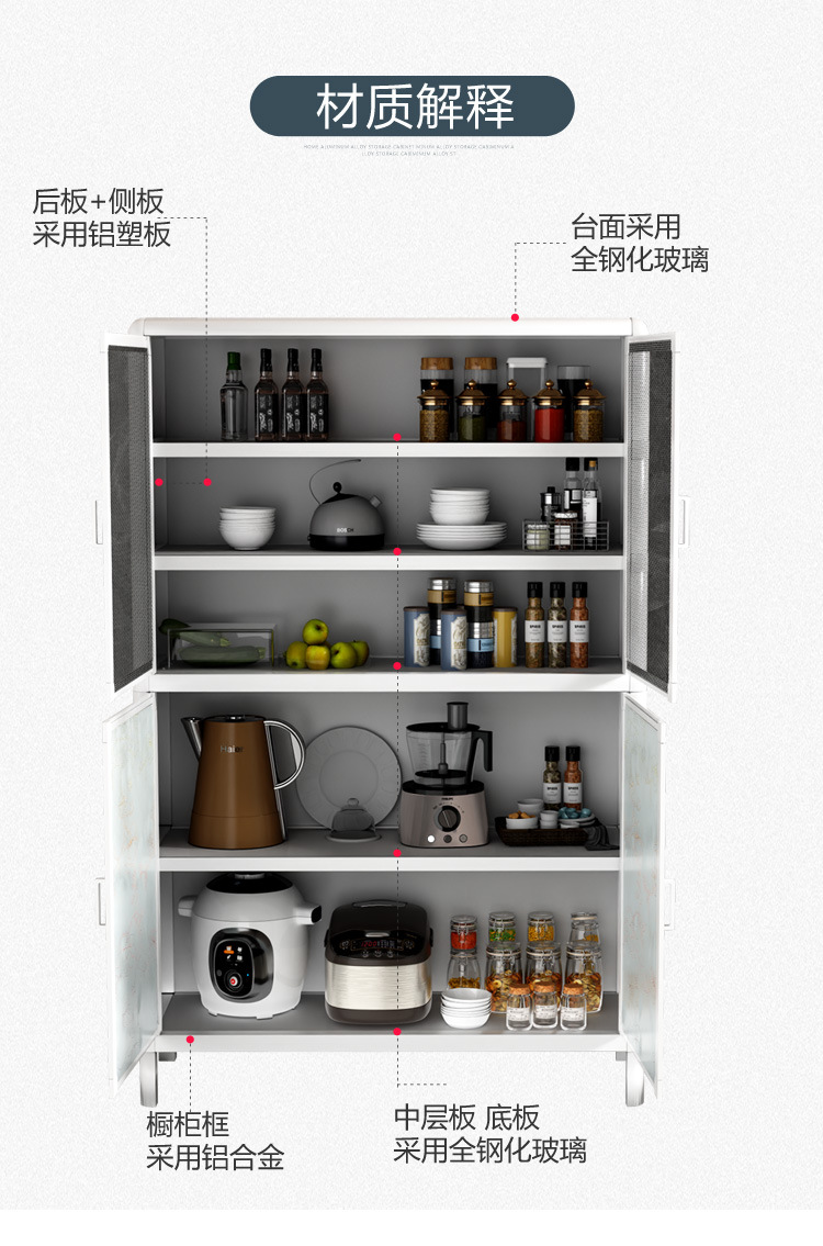 주방 스크린 도어 보관 캐비닛 다층 보관 캐비닛 식기 캐비닛 간단한 주방 캐비닛 알루미늄 합금 보관 랙 캐비닛