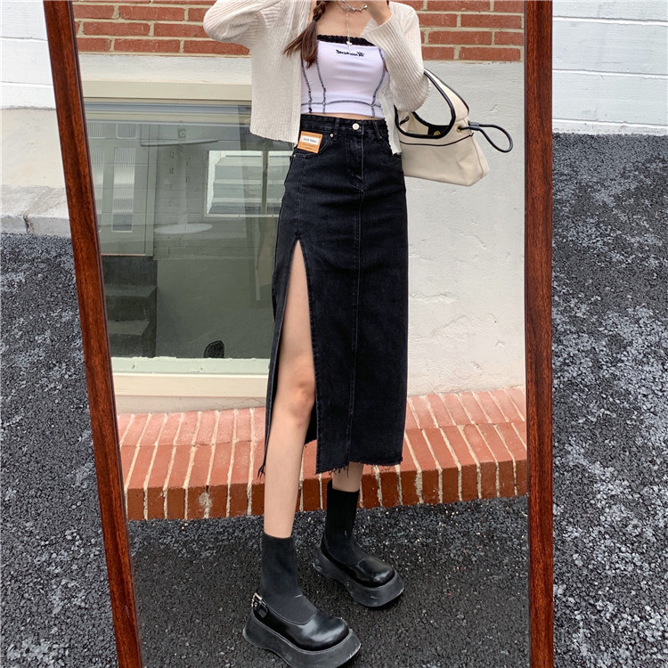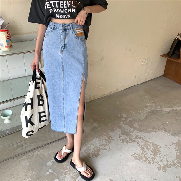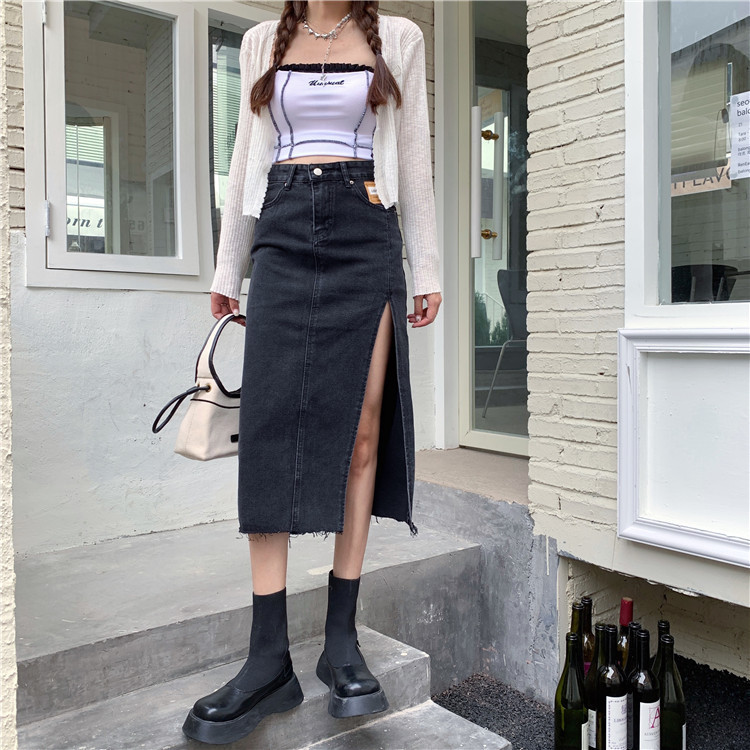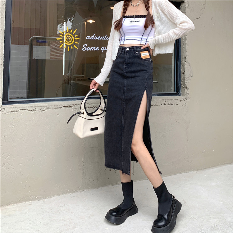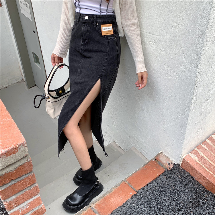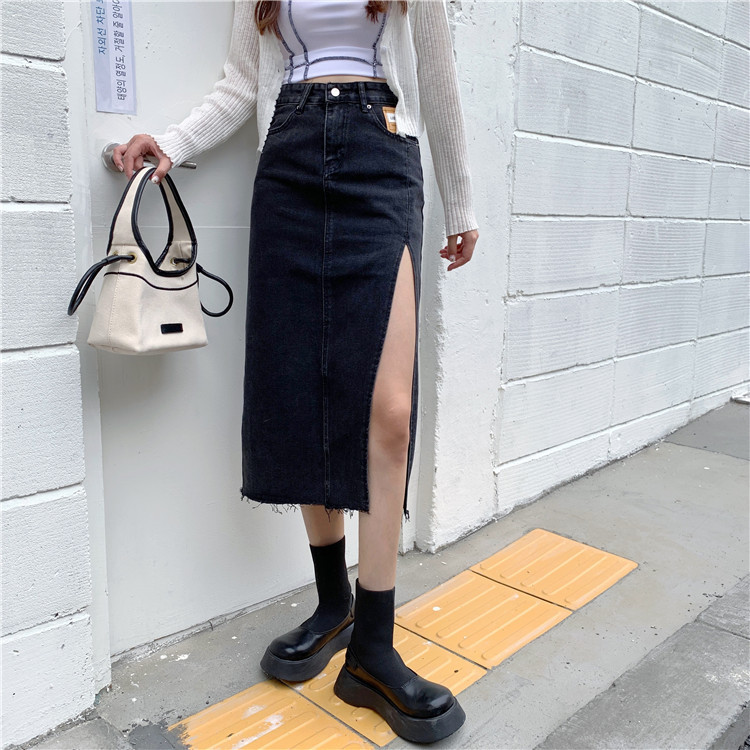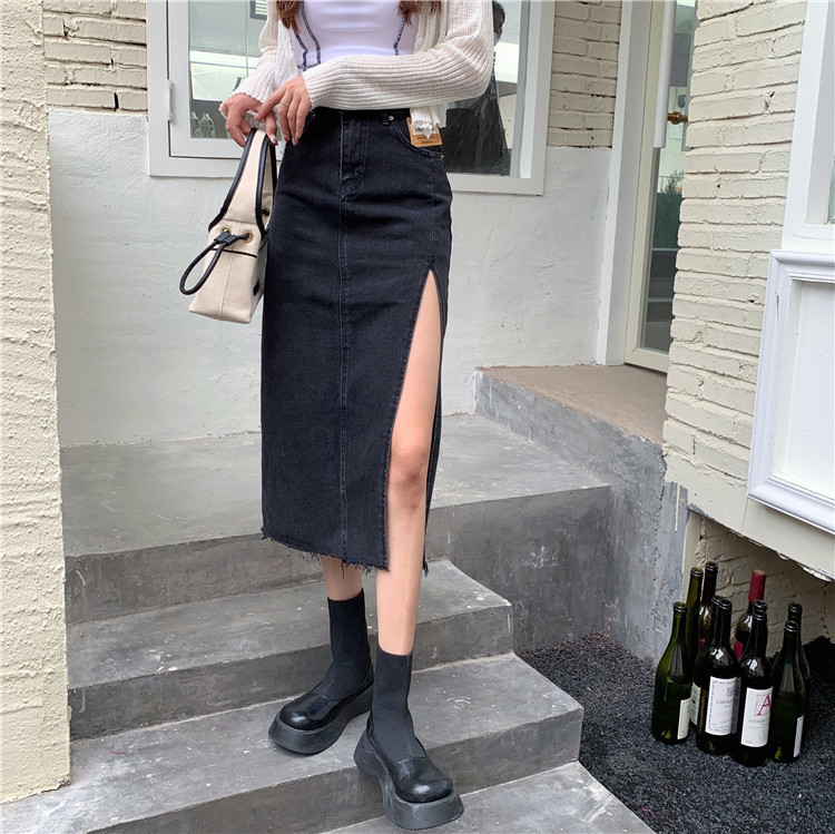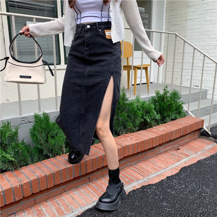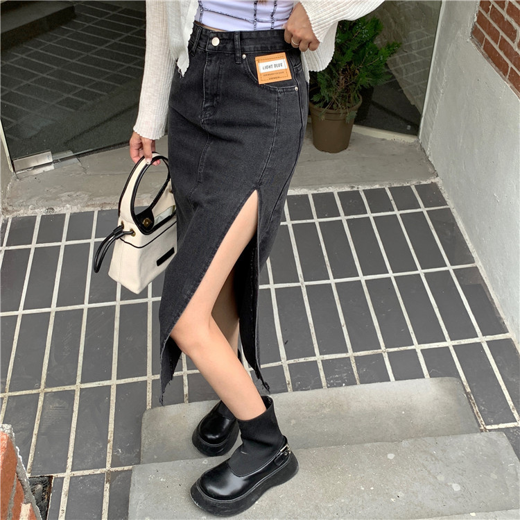 여성을위한 하이 웨이스트 슬림 루즈 슬릿 데님 스커트 2025 봄, 가을 새로운 스타일 스커트 a 라인 힙 롱 스커트스토어 가기