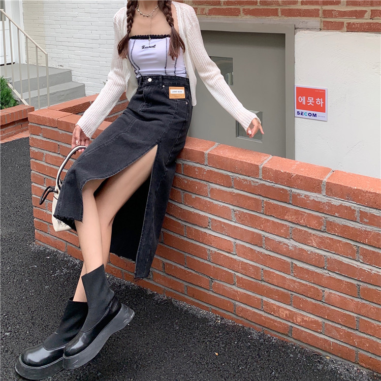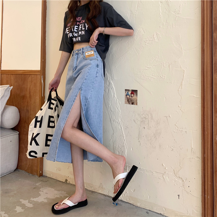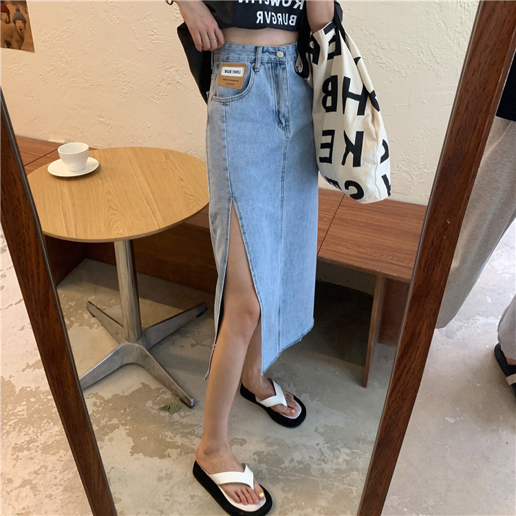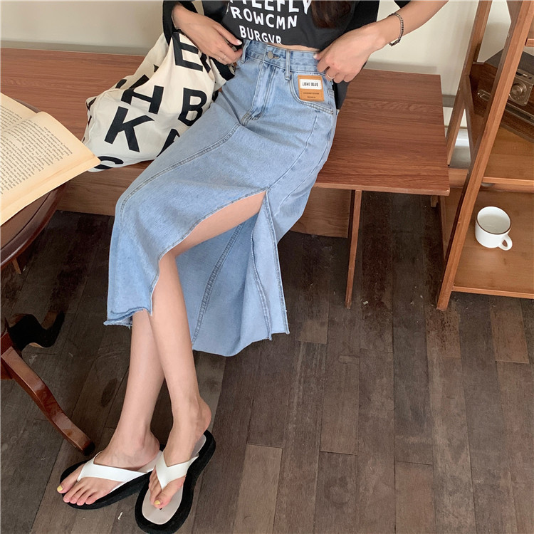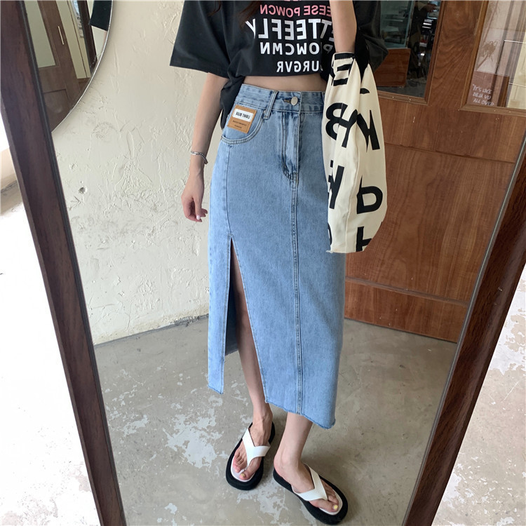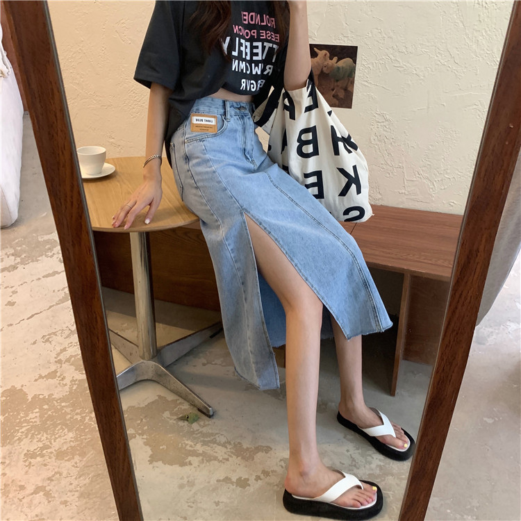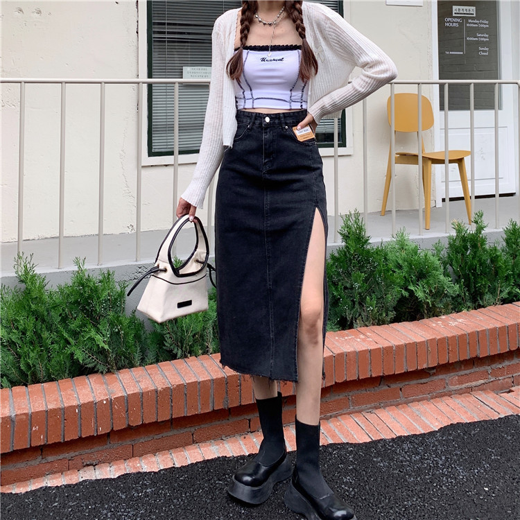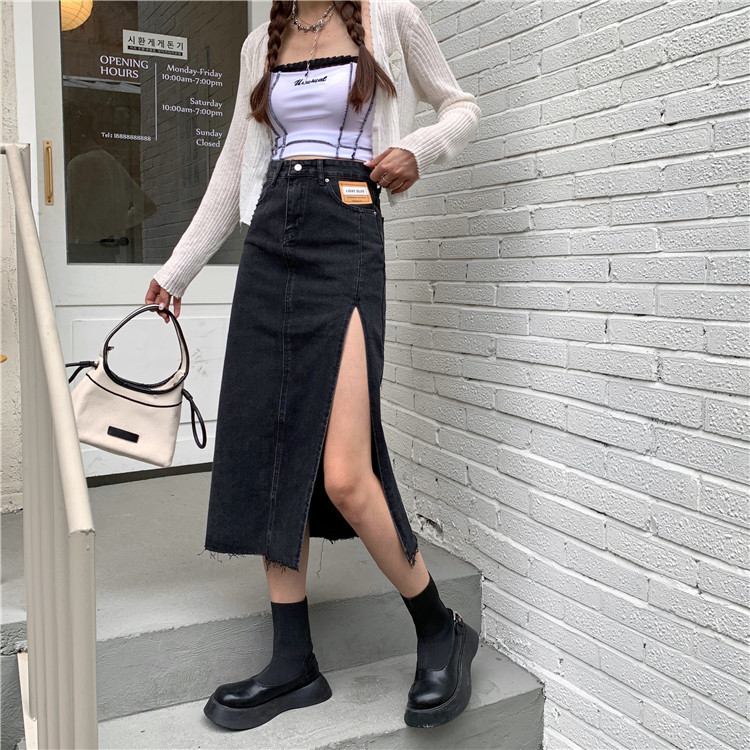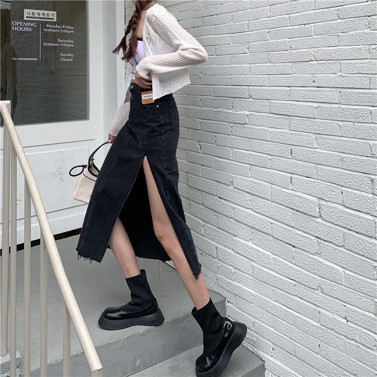여성을위한 하이 웨이스트 슬림 루즈 슬릿 데님 스커트 2025 봄, 가을 새로운 스타일 스커트 a 라인 힙 롱 스커트스토어 가기
