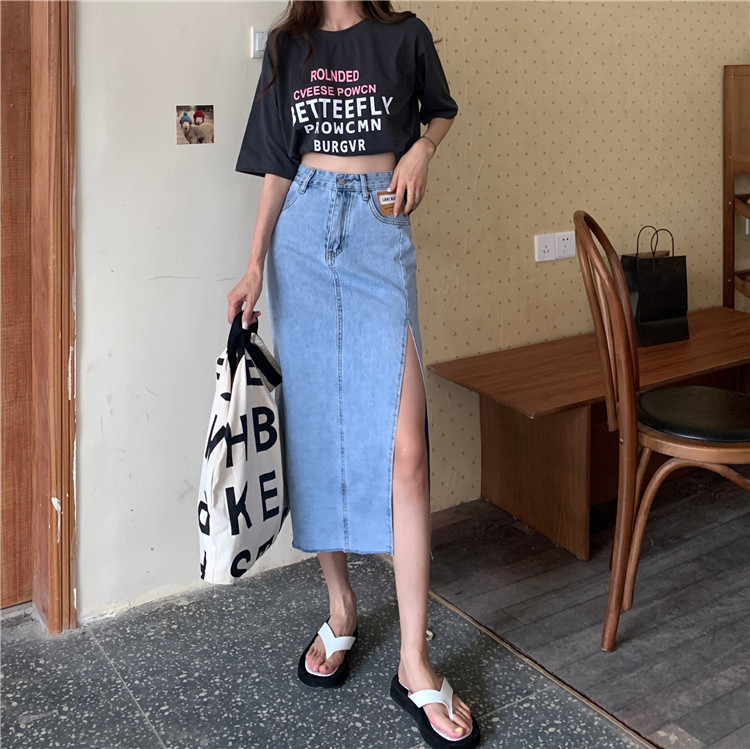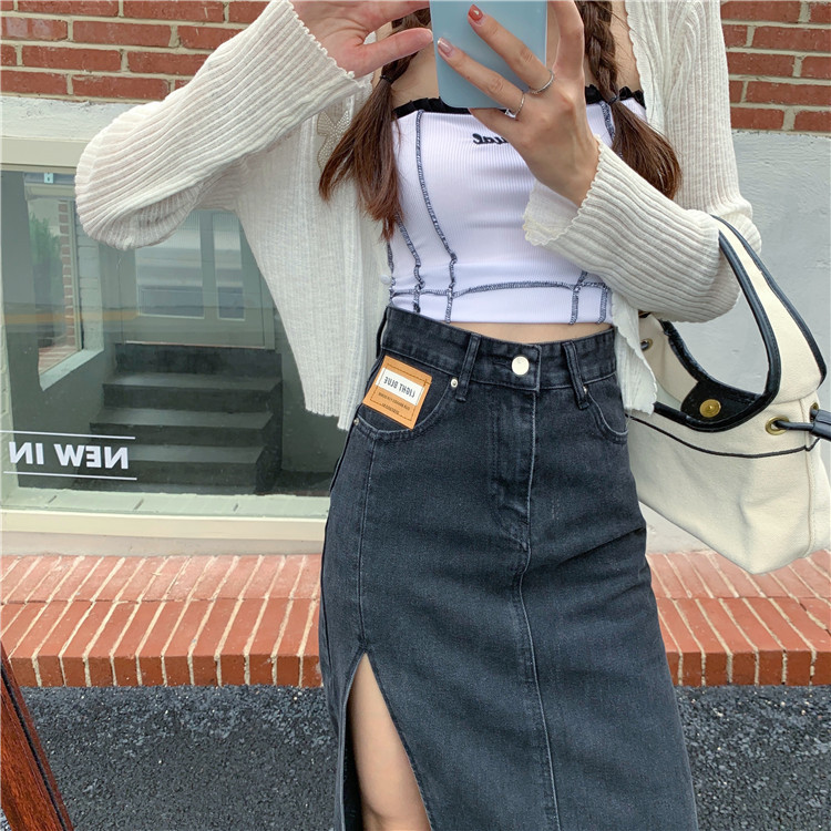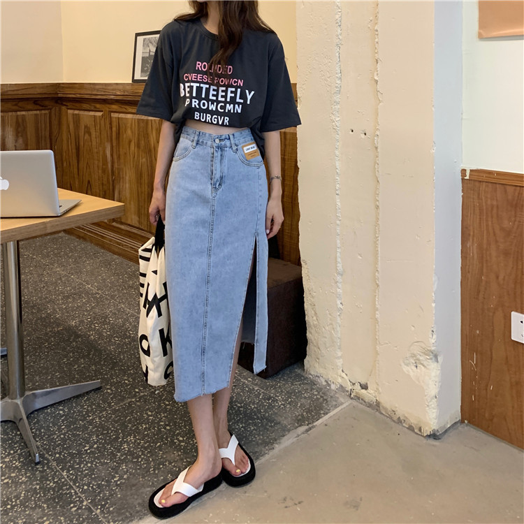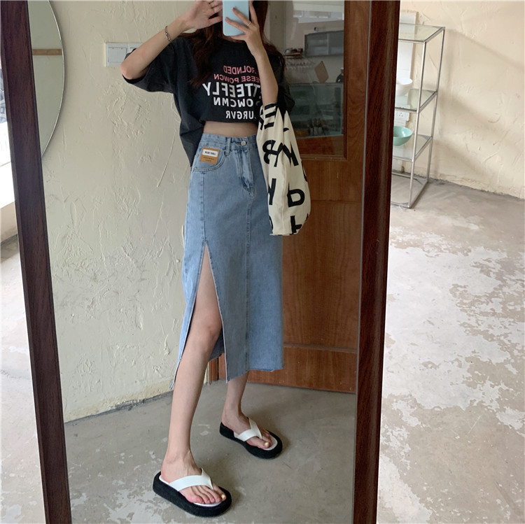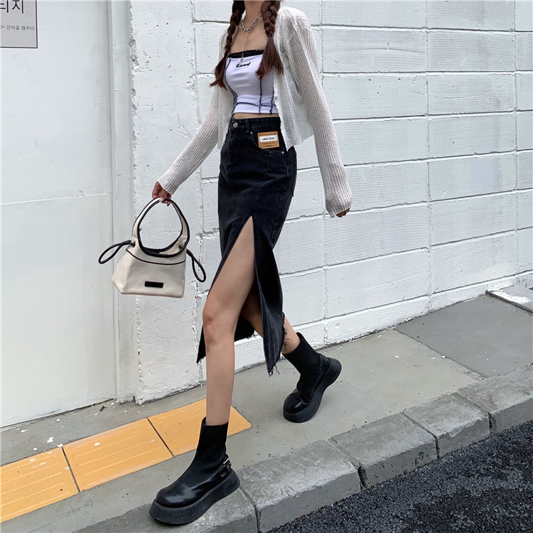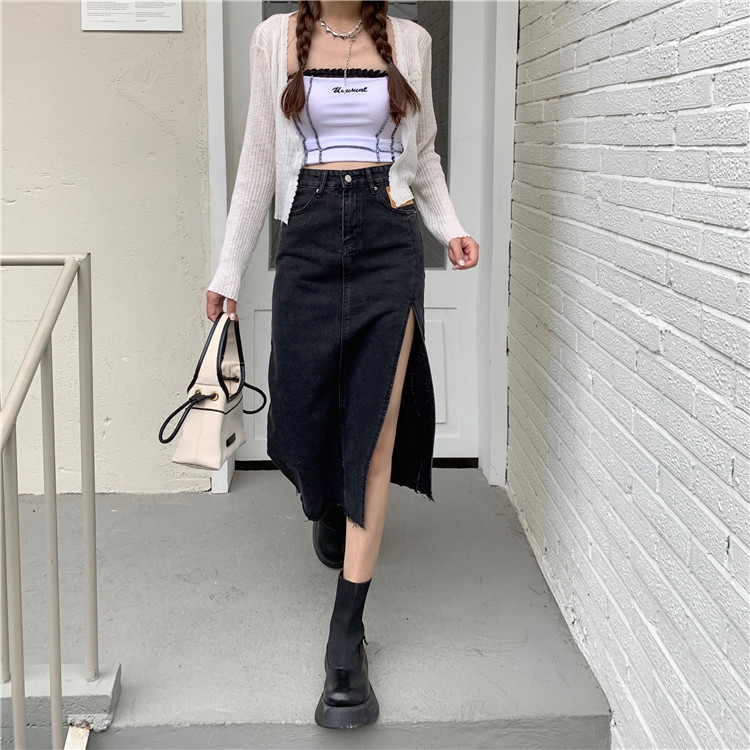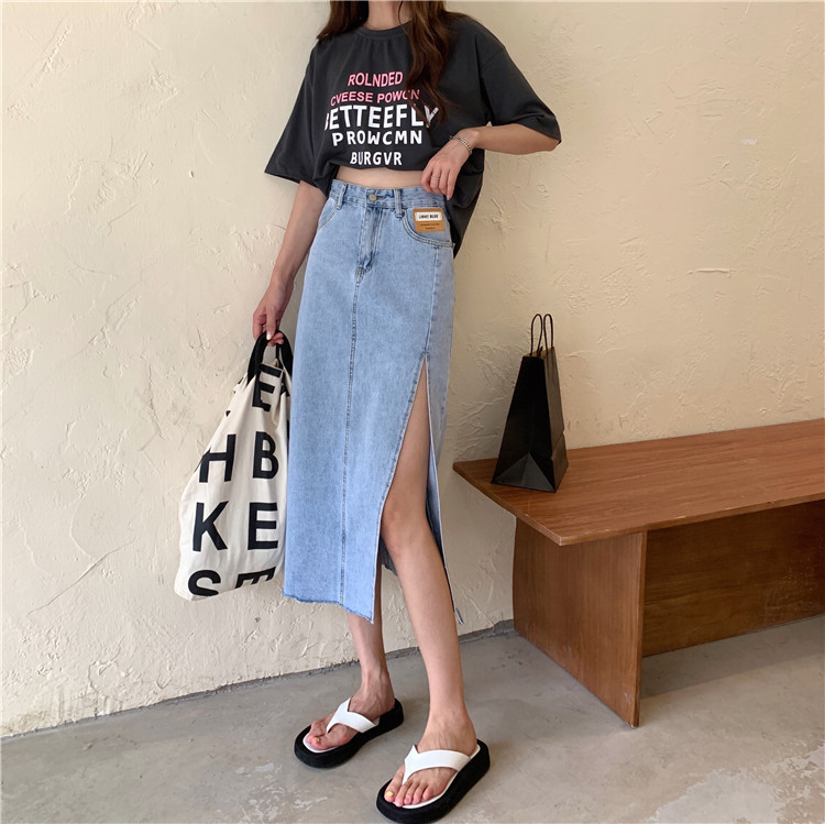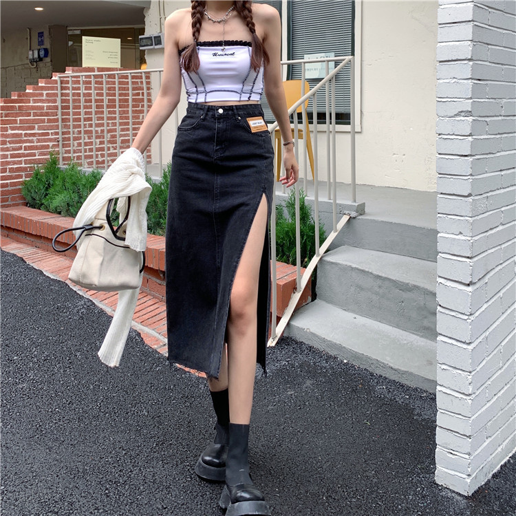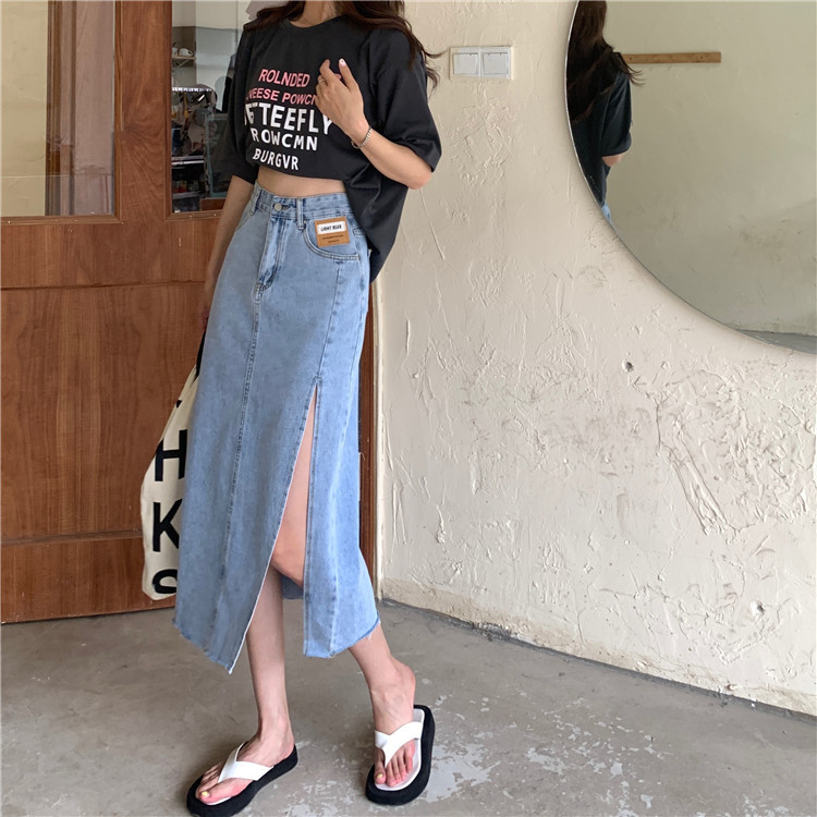 여성을위한 하이 웨이스트 슬림 루즈 슬릿 데님 스커트 2025 봄, 가을 새로운 스타일 스커트 a 라인 힙 롱 스커트스토어 가기