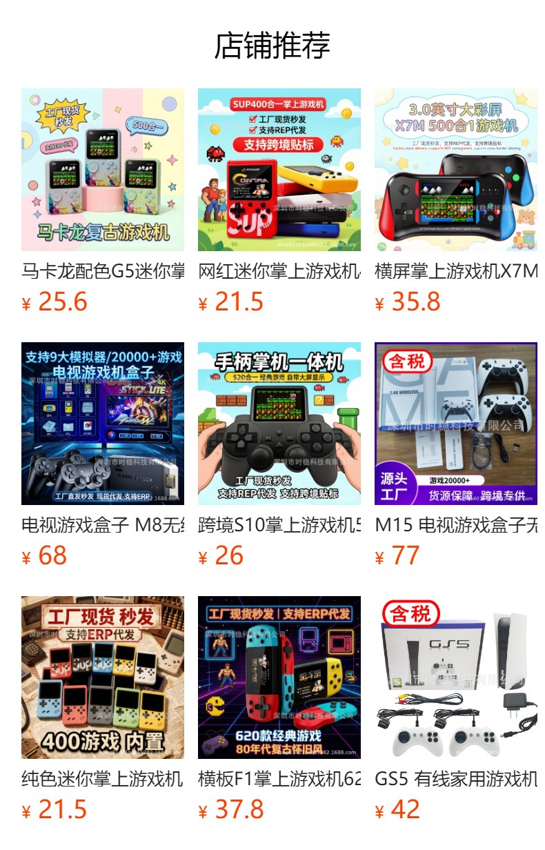 功能:支持AV三色输出电视投屏(标清),支持外接两个手柄双人使用